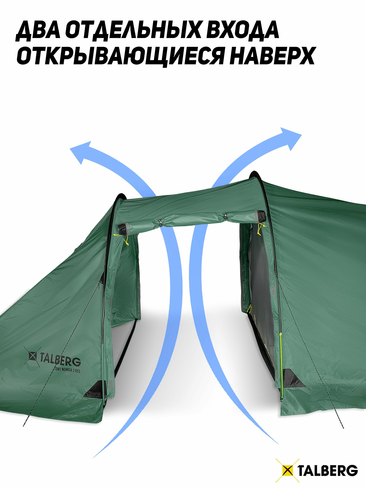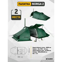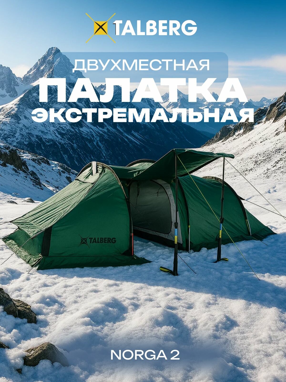 Палатка туристическая 2-х местная Talberg NORGA 2, зеленый, двухслойная, для охоты и рыбалки, под печь: сравнение цен, характеристики, фото, актуальное наличие и цены.