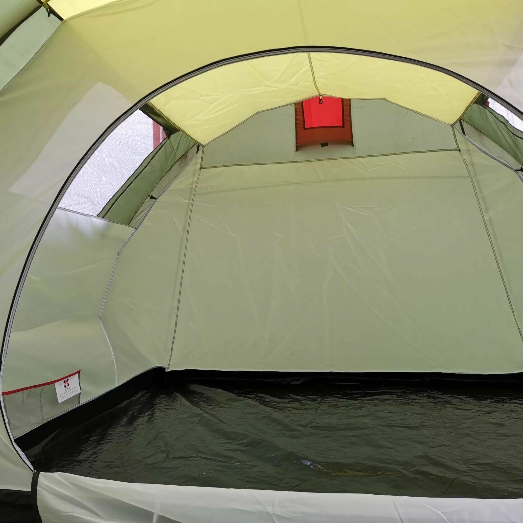 Палатка рассчитана на проживание в ней трех человек, при желании в тамбур может поместиться четвертый. В ней очень удобно перемещаться, так как в высоту она 150 см.