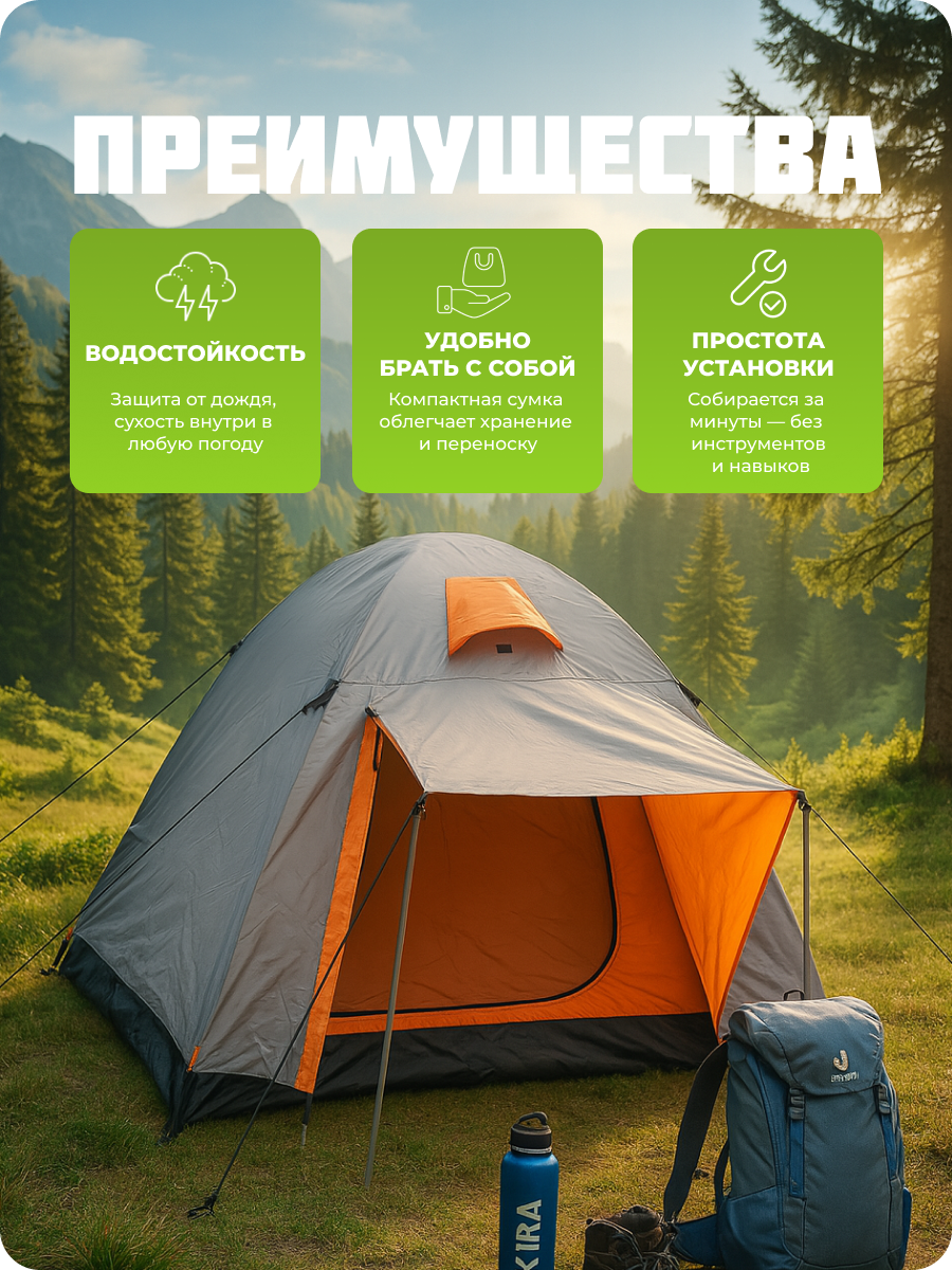 Эта палатка, с её прочными материалами и надежной конструкцией, способна выдерживать различные климатические условия. Забудьте о беспокойстве в дождливую погоду — ваша палатка защитит вас и ваших спутников от влаги и ветра.