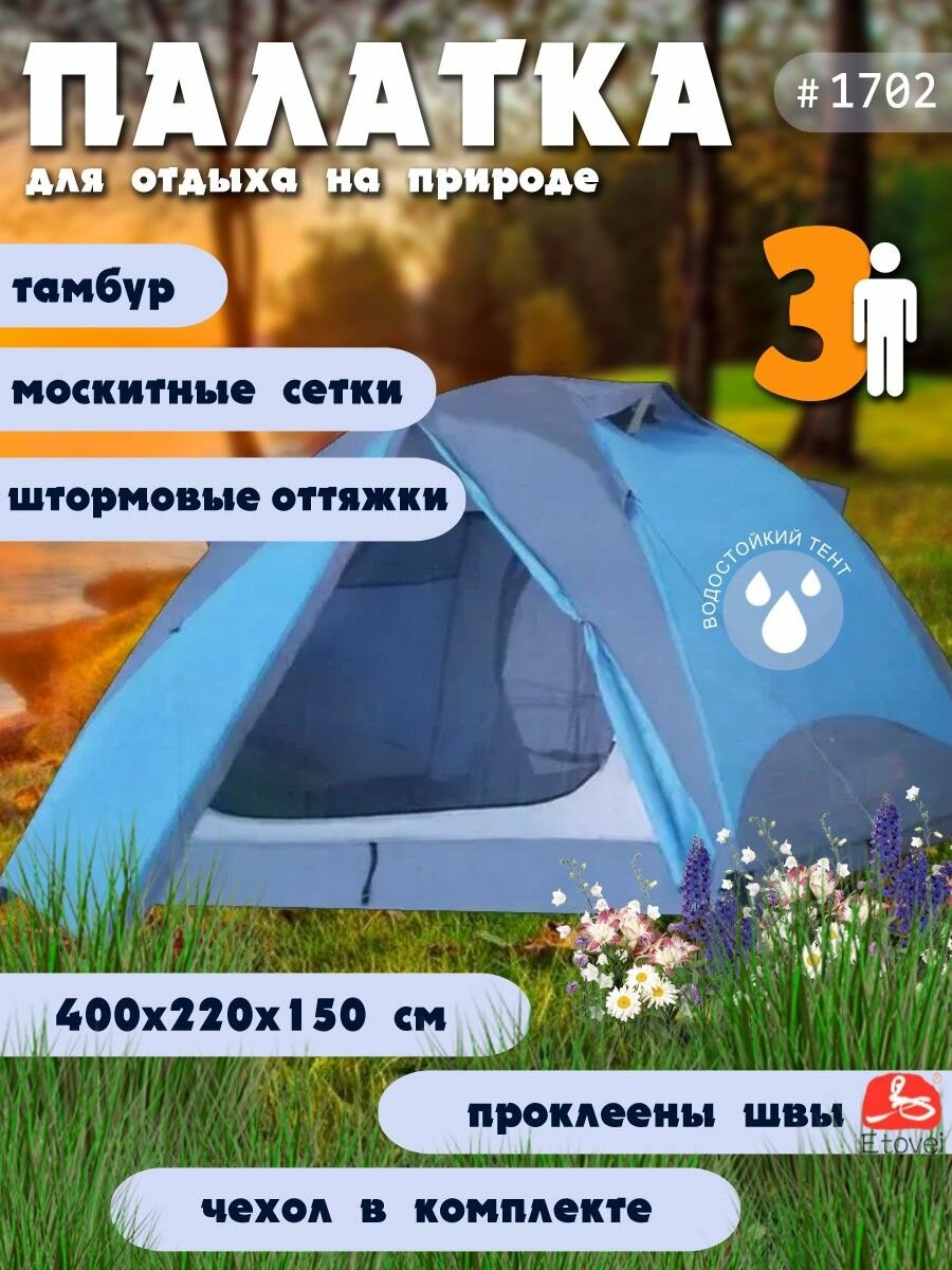 Купить Палатка Etovei LY-1702, 3-местная, кемпинговая, водонепроницаемая, синяя/серая с доставкой по всей России. Палатка Etovei LY-1702, 3-местная, кемпинговая, водонепроницаемая, синяя/серая: сравнение цен, характеристики, фото, актуальное наличие и цены.
