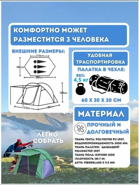 Купить Палатка туристическая 3-х местная LY-1707 с доставкой по всей России. Палатка туристическая 3-х местная LY-1707: сравнение цен, характеристики, фото, актуальное наличие и цены.