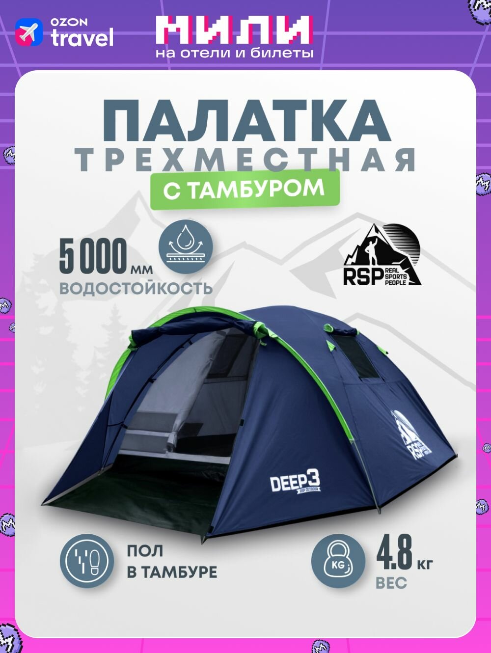 Палатка туристическая 3-х местная RSP Deep 3 (цв. синий): сравнение цен, характеристики, фото, актуальное наличие и цены.