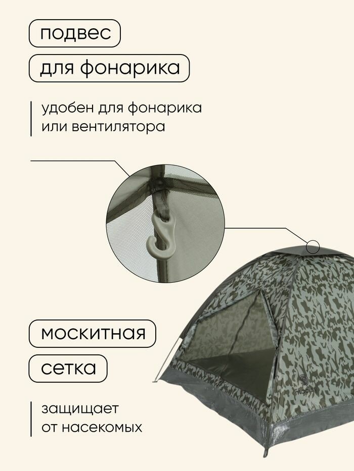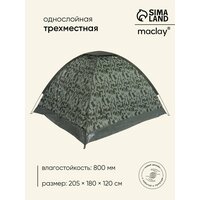 Купить Палатка туристическая 3-местная maclay fisht sme 3, 205 180 120 см, трекинговая, однослойная, цвет микс с доставкой по всей России.