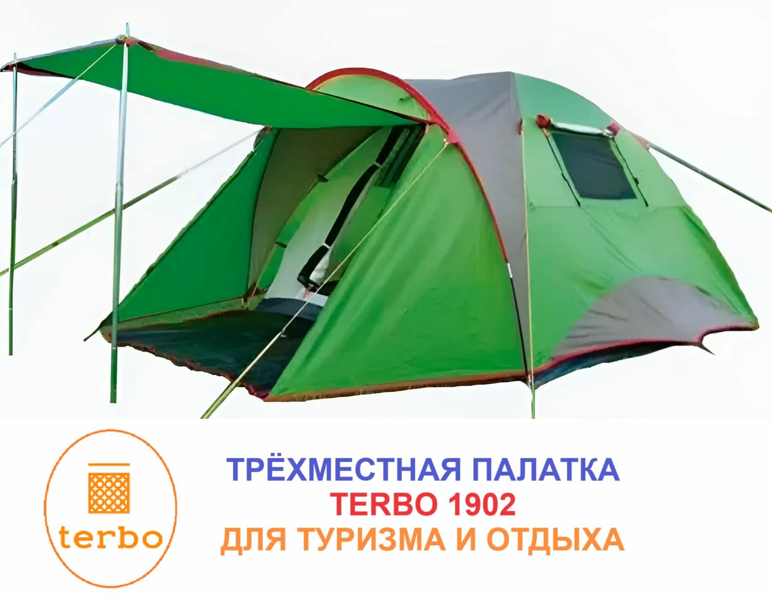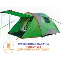 Палатка туристическая кемпинговая Terbo 1902, 4-местная, с тамбуром, двухслойная, зеленая, 5,7 кг, двухслойная: сравнение цен, характеристики, фото, актуальное наличие и цены.