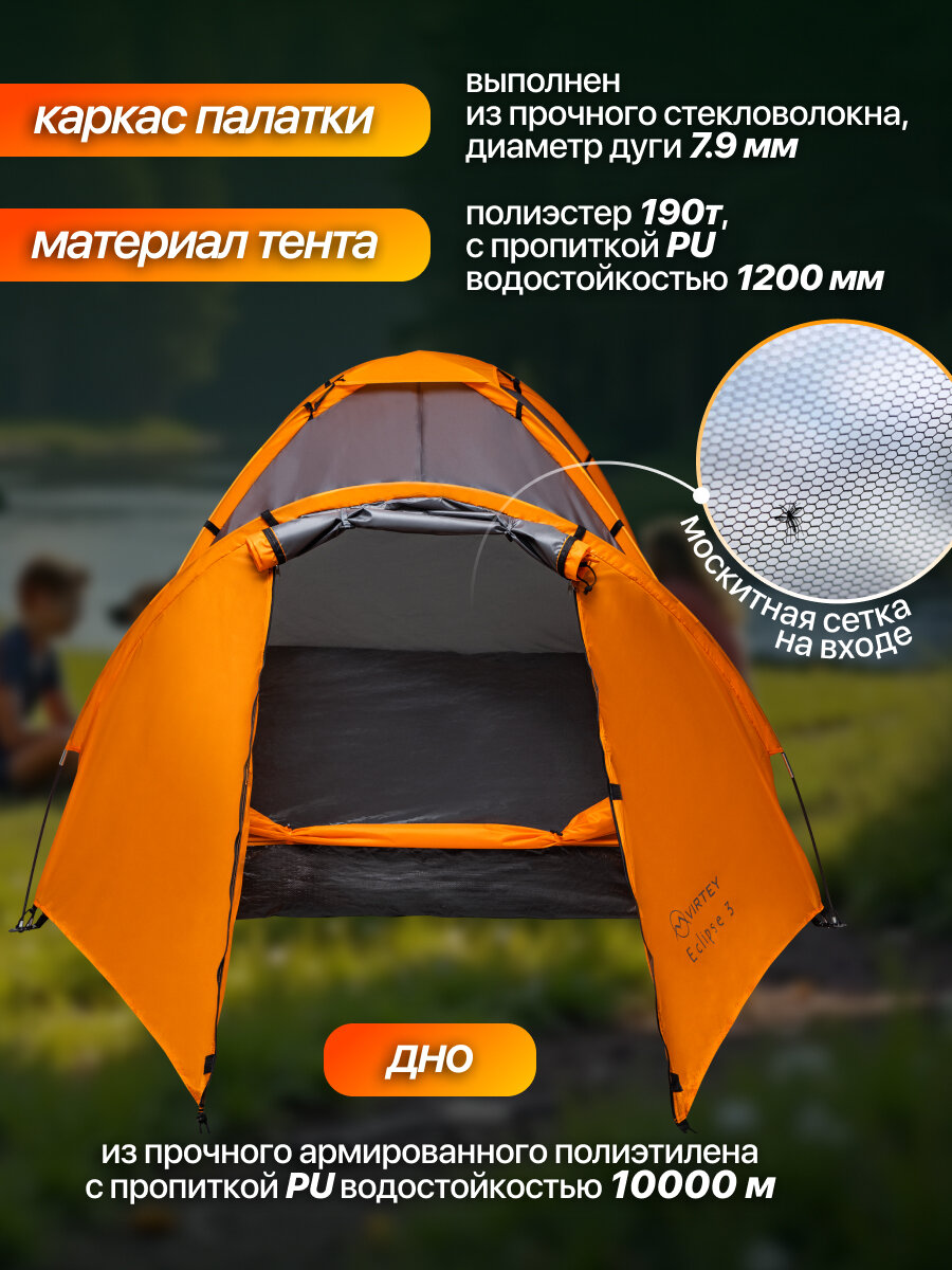 Палатка туристическая 3х местная однослойная с тамбуром Virtey Eclipse-3 (300х180х120 см): сравнение цен, характеристики, фото, актуальное наличие и цены.