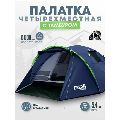 Внутри чехла находится инструкция, которая напечатана на ткани и пришита к чехлу, теперь можно не бояться, что она потеряется или намокнет. Палатки туристические 4-х местные - прекрасное решение для отдыха большой компанией или всей семьей. RSP Deep 4 - универсальная палатка для отдыха, ведь ее можно использовать всесезонно. Она позиционируется не только как палатка летняя, но и как вариант для осенних, весенних и даже зимних выездов.