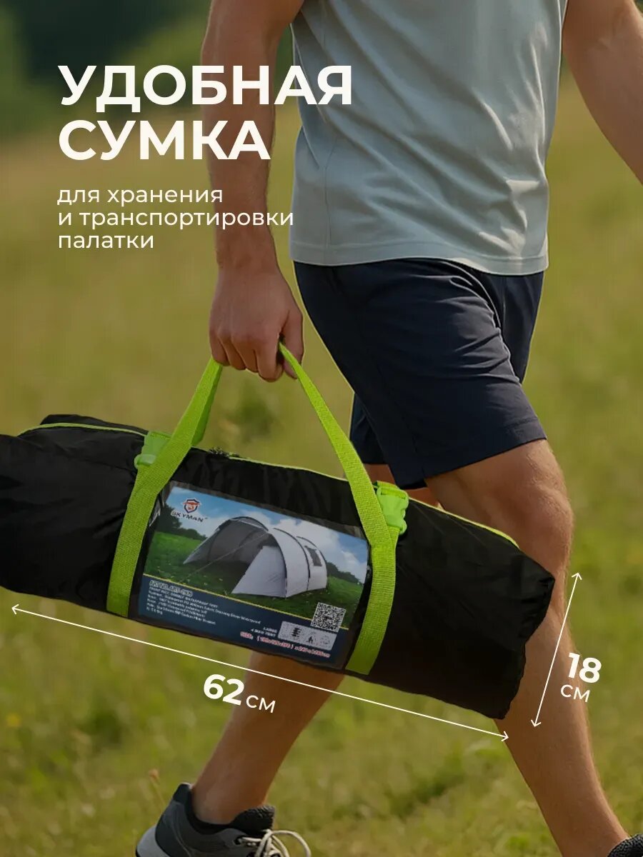 Компактная уличная 4местная палатка с сеткой отлично подходит как шатер для отдыха во время однодневных выездов на природу на пикники. Туристическая палатка с тамбуром, снабженная дугами, может использоваться и как кемпинговая семейная палатка с водонепроницаемым дном и удобным тамбуром для улицы. В ней можно отдохнуть после игр и общения на свежем воздухе. Путешествуя на автомобиле в летний период, можно останавливаться на ночлег в кемпингах, а не в отелях, что позволит значительно сэкономить.