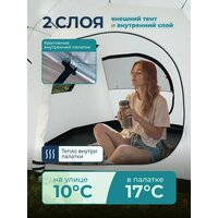 Армейская палатка двухслойная пригодится для рыбалки и охоты в качестве укрытия от ветра. 2х слойная легкая походная палатка отлично подойдет и как рыбацкая, и как охотничья. Она снабжена герметичным полом, который не пропустит влагу внутрь, а вместе с надувным матрасом и маскитной сеткой позволит не только удачно порыбачить, но и с комфортом отдохнуть. Даже при сильном ветре универсальная палатка стабильна за счет наличия жёсткого каркаса и штормовых растяжек. В прихожей, или в тамбуре для хранения вещей рыбак или охотник может удобно расположить свой инвентарь, защитив его от намокания.