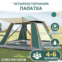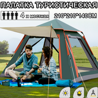 Палатка имеет шатровую форму, что обеспечивает большую вместимость и удобство использования. Ее размеры составляют 210 см в длину, 210 см в ширину и 140 см в высоту, что позволяет разместить внутри достаточное количество спальных мест.