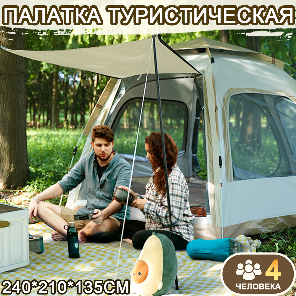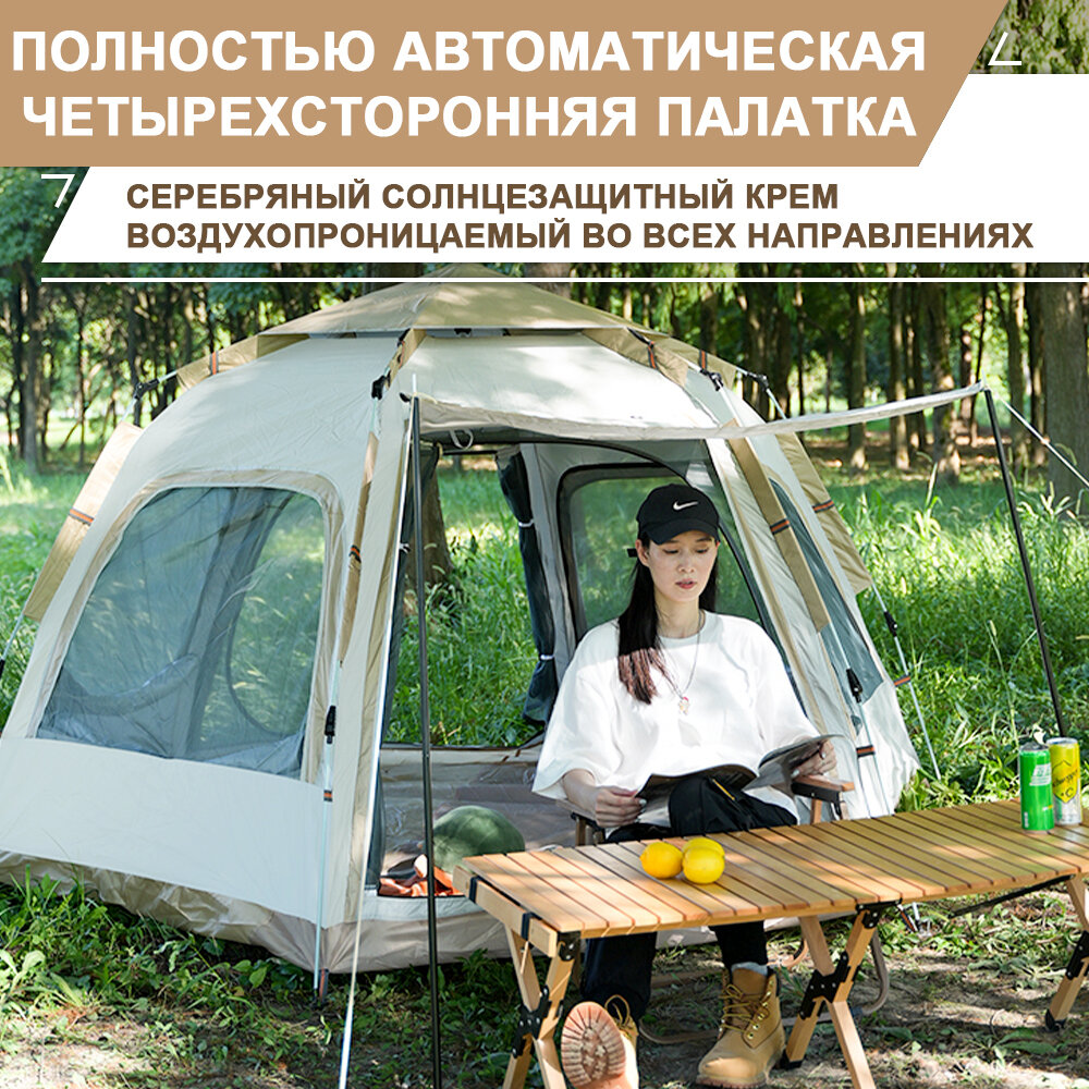Купить Палатка туристическая 4 местная, Палатка с москитной сеткой, Шестиугольный, однослойный,240*210*135cm, серый с доставкой по всей России.