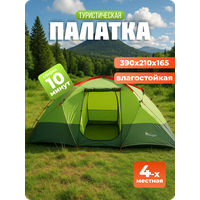 Для путешествия большой компанией необходима большая и комфортная палатка. 4-5 ти местная туристическая палатка Mircamping 1100 лучший вариант. Каркас сделан из крепких и надежных фибергласовых дуг. Существенный плюс данной палатки - это ее быстрая сборка. Конструкция палатки – это полубочка, практичная и ветроустойчивая. В наборе имеются колышки и оттяжки для фиксирования палатки и большей защиты от непогоды. Еще один плюс, что единое пространство палатки при необходимости можно разделить на три секции. Таким образом, прикрепляя специальные тканевые стенки, создаются индивидуальные комнаты для сна и отдыха.