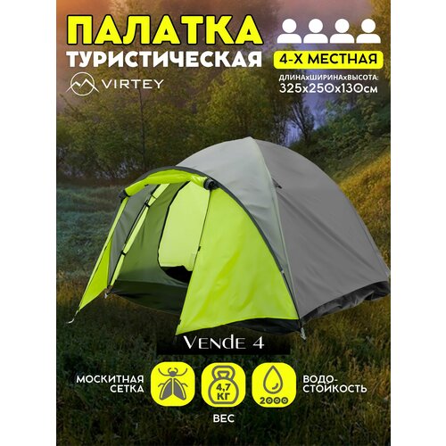 Купить Палатка туристическая 4х местная двухслойная с тамбуром Virtey Vende-4 (325х250×130 см) с доставкой по всей России.