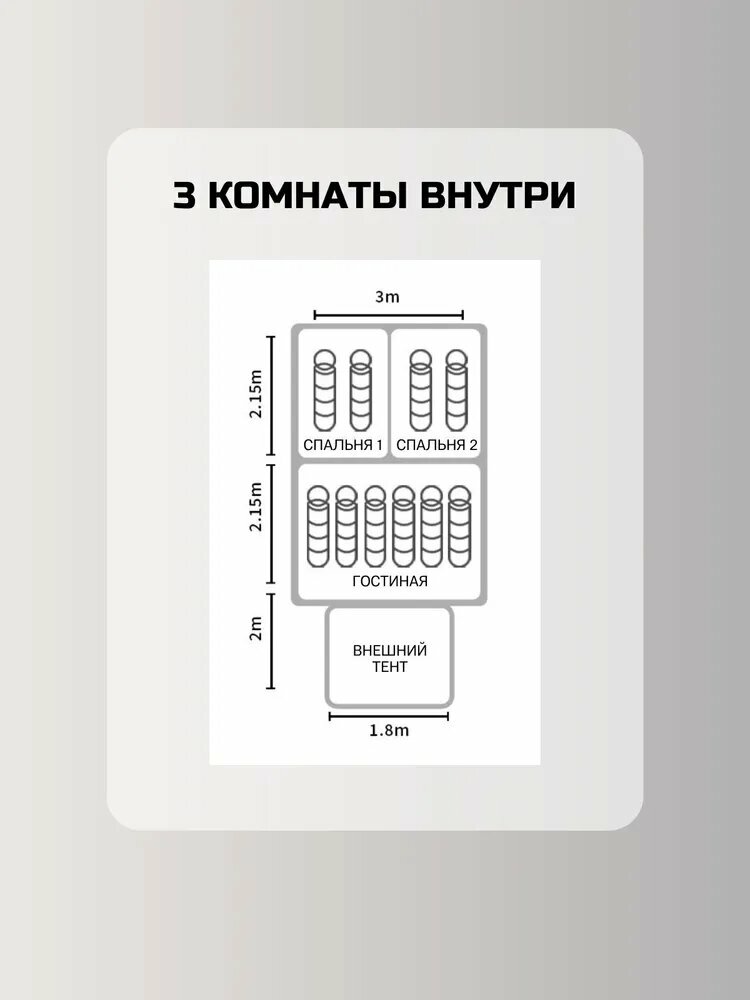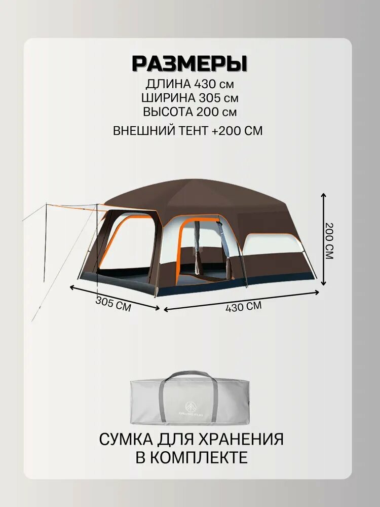 Палатка туристическая большая с тамбуром, 8-12 мест, 3 комнаты, Коричневый: сравнение цен, характеристики, фото, актуальное наличие и цены.
