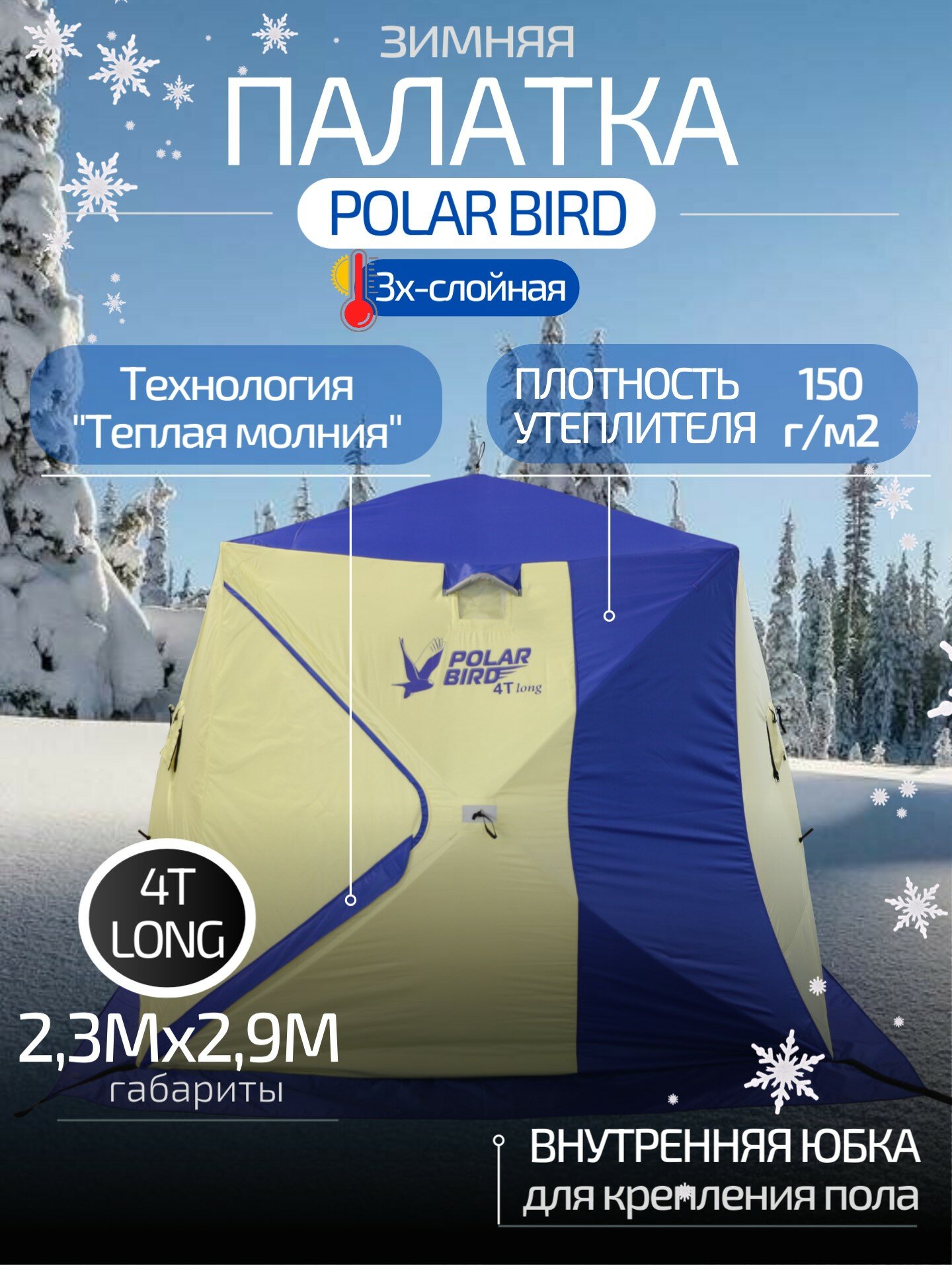 - Зимняя палатка Polar Bird 4T Long для рыбалки, охоты и путешествий.