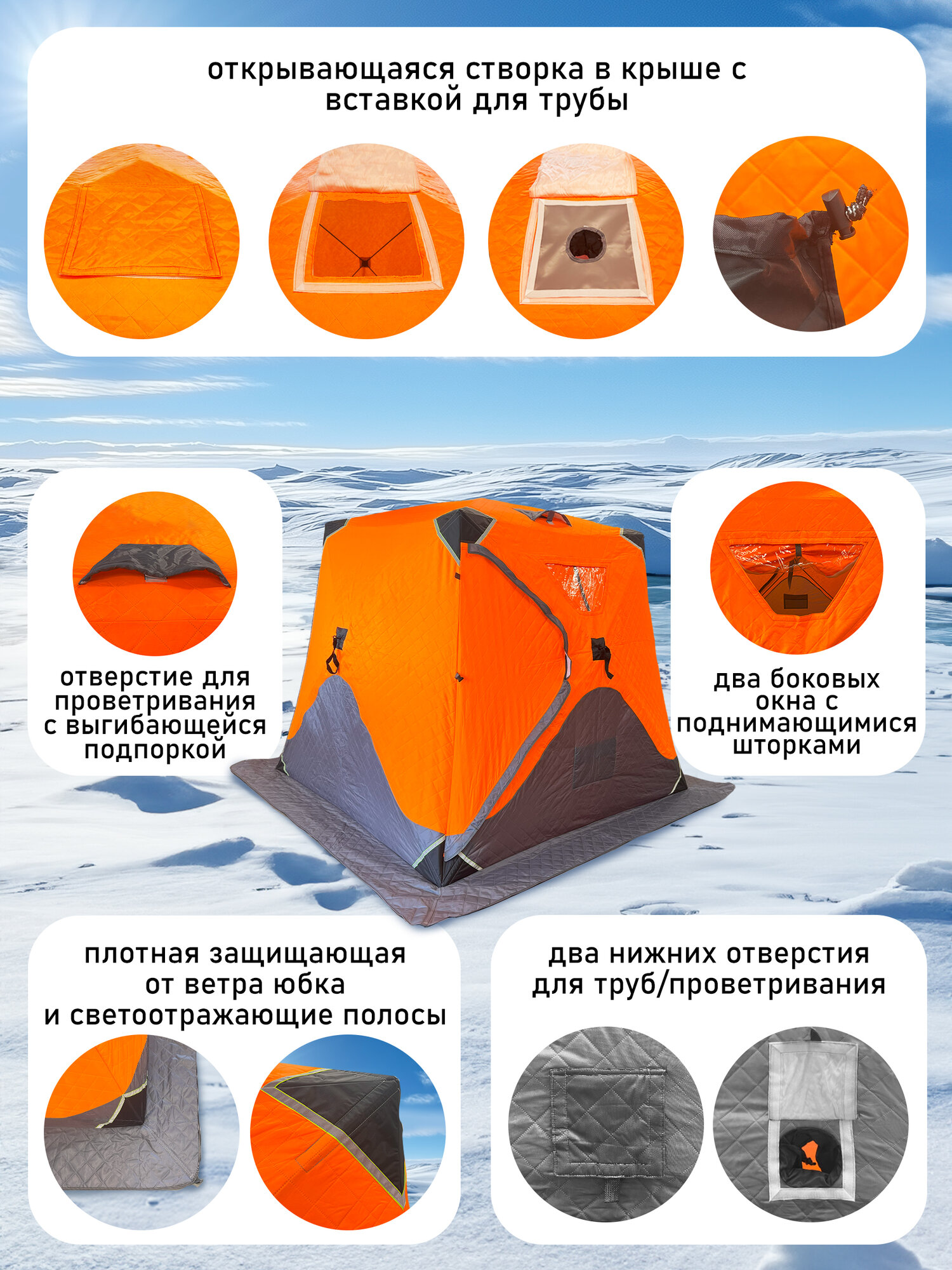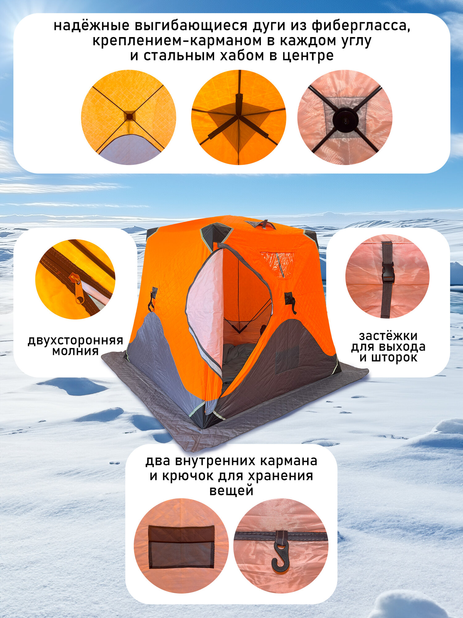 Представляем вашему вниманию зимнюю палатка, которая идеально подходит для рыбалки в холодное время года. Эта утепленная модель создана с учетом всех требований любителей активного отдыха, обеспечивая комфорт и защиту от неблагоприятных погодных условий. Сможете наслаждаться любимым увлечением даже в самые зимние морозы! Палатка имеет трехслойную конструкцию, которая эффективно удерживает тепло и защищает от ветра. Благодаря высококачественным материалам, она обеспечивает отличную теплоизоляцию и не теряет свои свойства при низких температурах. Внутреннее пространство палатки продумано для максимального удобства — достаточно места для того, чтобы разместить все необходимые аксессуары для рыбалки и комфортно расположиться внутри. Кубическая форма палатки позволяет легко устанавливать и снимать ее. Эта модель легка в транспортировке, что очень важно для рыбаков, путешествующих на большие расстояния. Палатка также оборудована сетчатыми окнами для обеспечения вентиляции, что позволяет избежать запотевания и накопления влаги внутри. Эта зимняя палатка станет отличным выбором для тех, кто ценит удобство и практичность. Устойчивость к неблагоприятным условиям, надежная конструкция и утепленные стенки — все это делает ее незаменимым атрибутом для зимней рыбалки.