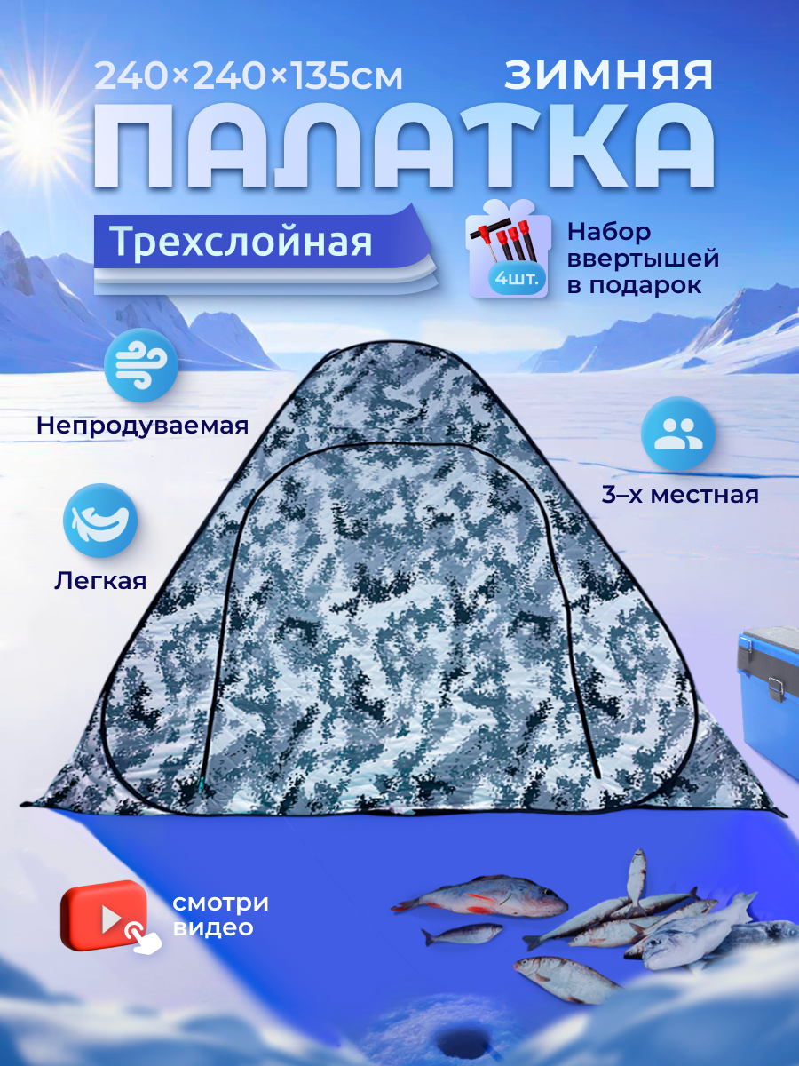Палатка зимняя, для рыбалки, внутренний каркас, 3 места, 2,4х2,4 м: сравнение цен, характеристики, фото, актуальное наличие и цены.