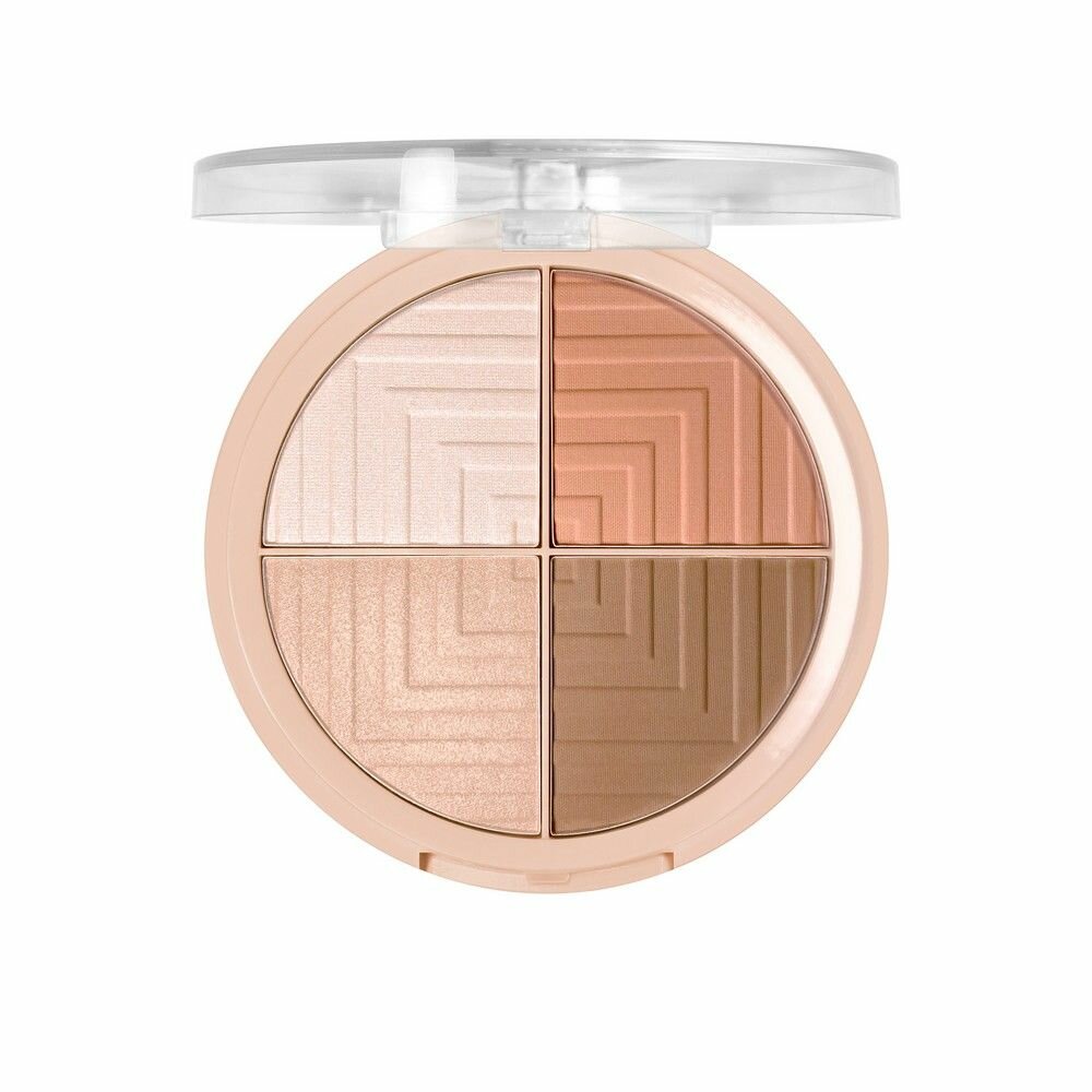 Многофункциональная палетка Sculpt & Shine включает четыре гармонично подобранных продукта – контурирующая пудра, матовые румяна и два оттенка хайлайтера - всё, что нужно, чтобы подчеркнуть твою естественную красоту. Шелковистые текстуры комфортно распределяются на коже и сохраняют стойкость в течение дня. Благодаря сухой консистенции их плотность можно менять, а растушевка потребует минимум времени. Для нанесения воспользуйся пушистой кистью среднего размера. Скульптор (soft brown) нанеси на скуловую зону, крылья носа, височные впадины, контуры лица и мягко растушуй вдоль линии роста волос. Румяна (Natural) нанеси на яблочки щек и мягко растушуй по направелнию к виску. Хайлайтером (Light) подсвети выступающие части лица. Более темный Хайлайтер (Sunny) нанеси на верхнюю линию скул, мягко сглаживая переход с румянами. Универсальный оттенок контурирующей пудры Soft Brown создает на коже естественную тень, без серого оттенка и желтизны. Подчеркни им скуловую зону, скорректируй переносицу и крылья носа, затемни контуры лица и лоб у линии роста волос. Матовые румяна нежного персикового оттенка придадут лицу свежий и отдохнувший вид. Нанеси их на скулы и мягко растушуй кистью. Светлый хайлайтер жемчужного оттенка деликатно подсвечивает выступающие части лица. Нанеси его на спинку носа, верхний контур губ и зону под бровями. Более темный оттенок Sunny идеален для проработки линии скул. Также используй его в качестве сияющих теней для век.