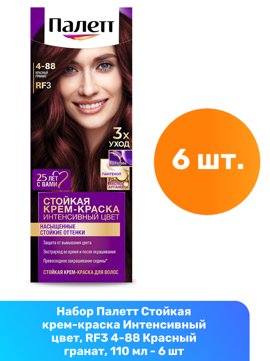 Палетт Стойкая крем-краска Интенсивный цвет, RF3 4-88 Красный гранат, 110 мл — 6 шт: сравнение цен, характеристики, фото, актуальное наличие и цены.
