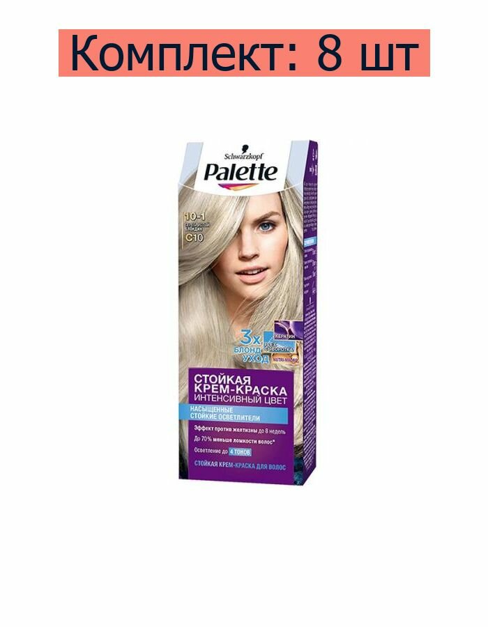 Palette Крем-краска стойкая для волос Интенсивный цвет 10-1 Серебристый блондин, 110 мл, 8 шт: сравнение цен, характеристики, фото, актуальное наличие и цены.