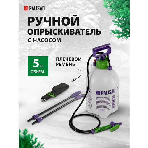 Используется в саду и огороде для защиты растений от вредителей и болезней, а также при проведении подкормок и внесении удобрений. Ручной опрыскиватель 5 литров. Конструкция имеет прочную колбу с мерной шкалой, ремень для ношения на плече во время выполнения работы, насос для создания давления, ручка которого имеет фиксатор и может использоваться для переноски опрыскивателя, автоматический клапан контроля давления, брандспойт. Распыляющая форсунка с возможностью регулировки напора. Материал прочный АБС-пластик. Принцип работы: С помощью встроенного в крышку насоса нагнетается рабочее давление в колбе, затем при нажатии и удержании курка на брандспойте происходит распыление. Продолжительность зависит от созданного давления. Клапан сброса давления срабатывает при превышении порога нагнетаемого давления 2,8 атм. Фиксатор курка удерживает его в рабочем положении для долговременной работы. При работе с опрыскивателем всегда используйте средства защиты: резиновые перчатки, защитные очки, респиратор. Хранить опрыскиватель необходимо в недоступном для детей месте, отдельно от пищевых продуктов. Также можно использовать в бытовых целях.