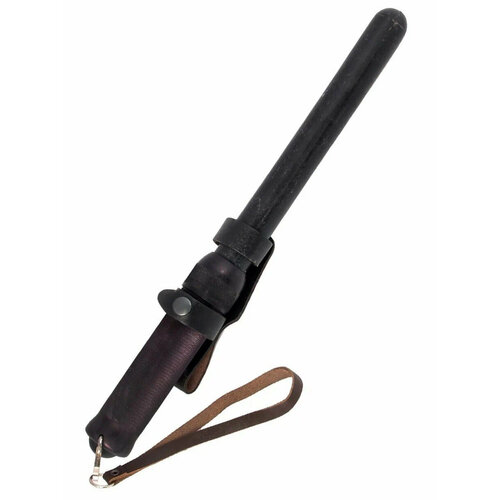 Палка тренировочная резиновая ПР-89, длина сложенной: 46 см, длина выдвинутой: 57 см, Ø палки 3,0 см, Ø ручки 3,8 см, вес: 600 гр В комплекте крепление на ремень «шлевка» из кожи и кожаный темляк для ношения на кисти.