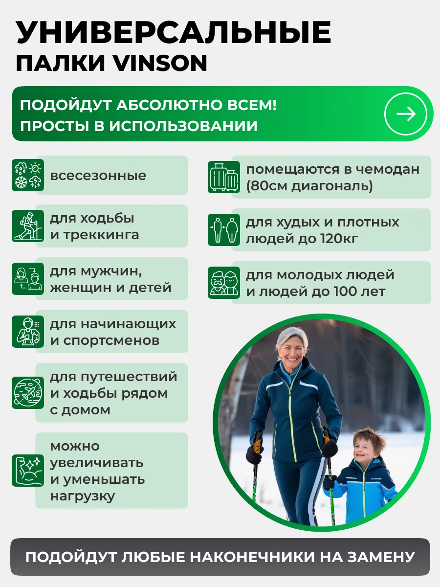 Выбирая палки для скандинавской ходьбы Vinsons Plus, вы получаете качественный и надежный аксессуар для комфортных и безопасных занятий скандинавской ходьбой.