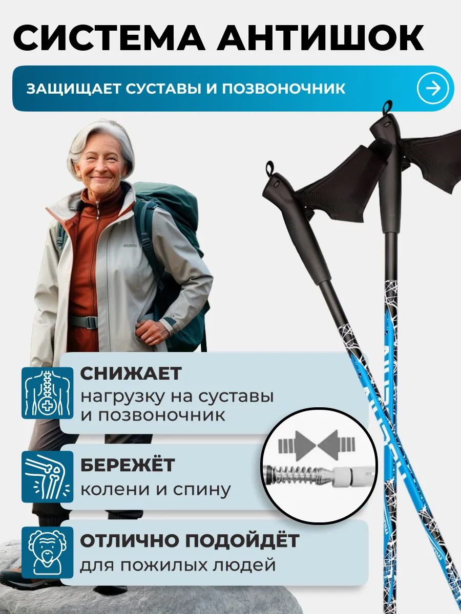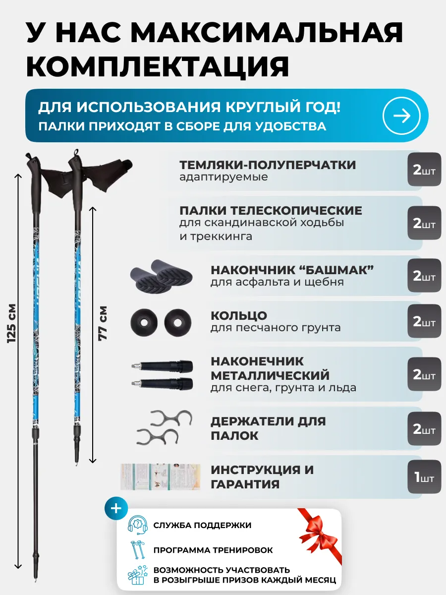 5. Страна производитель: КНР. Во время пешей прогулки создается нагрузка на позвоночник, спину и плечи. Скандинавская ходьба позволяет избежать этого, сделав тренировку простой и полезной. Она подходит для людей любого возраста и уровня подготовки. Карбоновые палки для нордической, северной ходьбы- стильные, отличного качества, прочные и очень легкие благодаря 30% карбона в составе, вес палок - 330 гр. Подойдут и мужчинам и женщинам, кто хочет начать заниматься скандинавской ходьбой, но при этому купить сразу палки хорошего качества, а также людям в возрасте благодаря своей легкости. Темляки-полуперчатки надежно фиксируют руку, делая тренировку максимально комфортной и эффективной, не натирают, подходят для всех размеров кистей. Пробковая рукоятка идеально сидит в руке. Если палки используют разные члены семьи или их нужно быстро и удобно упаковывать, желательно выбирать телескопические. Размер этих спортивных девайсов рассчитывают по формуле, в которой рост человека умножают на коэффициент: 0,66 – для невысокого темпа ходьбы пожилых, нетренированных людей или тех, кто восстанавливается после травмы, операции или недуга; 0,68 – для здоровых пользователей, любителей средних нагрузок, желающих совместить интенсивный поход с общением в дружной компании; 0,70 – для профессионалов, спортсменов, выбирающих быстрый темп и сохранение физической формы на высоком уровне. Одним из главных преимуществ, которыми обладают телескопические палки для ходьбы, является их сборно-разборная конструкция. С ее помощью легко транспортировать инвентарь, взяв его в поездку, путешествие, на дачу. Длину палок можно варьировать под любого члена семьи, позволяя сэкономить на покупке нескольких спортивных атрибутов. Хорошее соотношение цена-качество.