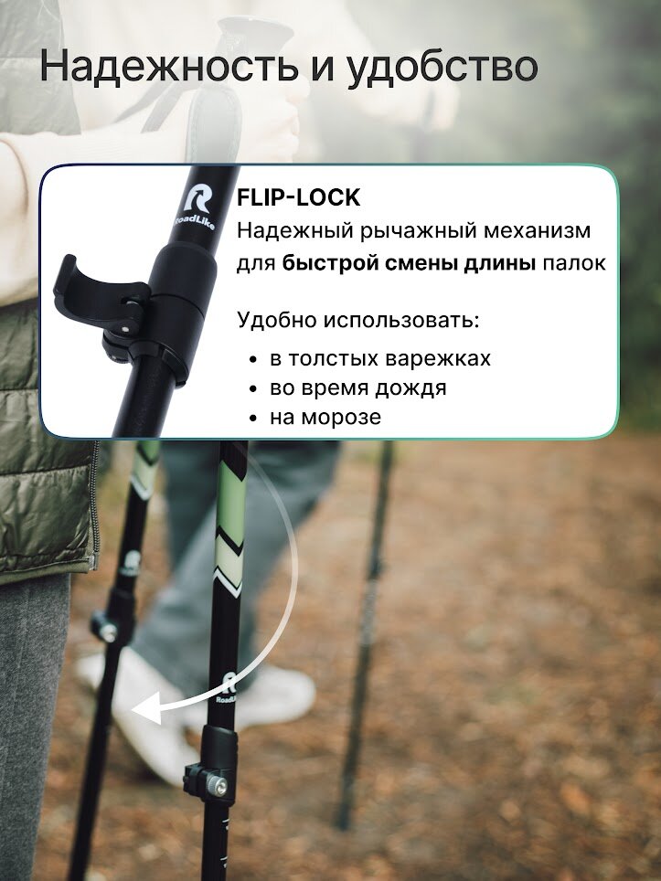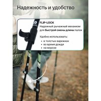 Дополнены системой flip-lock для регулировки высоты. Продуманная эргономика гарантирует комфорт во время ходьбы. Каждая деталь надежно фиксируется. Пробковая ручка повторяет форму руки.