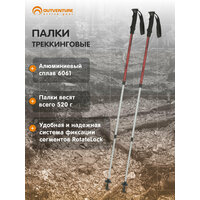 Трехсекционные телескопические палки Outventure — идеальный выбор для комфортного и безопасного путешествия. Регулируемая длина от 65 до 135 см позволяет настроить их под рост каждого туриста. Прочный алюминиевый сплав 6061 гарантирует надежность и долговечность изделия. Легкий вес (всего 520 г) делает их удобными в использовании. Кроме того, удобная и надежная система фиксации сегментов RotateLock обеспечивает стабильность и безопасность во время движения. В комплекте 2 шт. Не упустите возможность сделать свой поход комфортным и безопасным с палками Outventure!