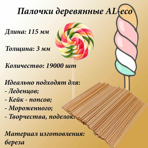 Представляем вашему вниманию набор березовых палочек для леденцов и кейк-поп, который станет незаменимым помощником на вашей кухне. В упаковке вы найдете целых 19000 палочек, длина каждой из которых составляет 115 мм, а диаметр - 3 мм. Эти палочки идеально подходят для создания вкусных кондитерских изделий, будь то леденцы, кейк-попсы или даже мороженное.