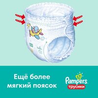 Вы заботитесь о нежной коже малыша и хотите, чтобы в трусиках малышу было по-настоящему комфортно? Попробуйте новые трусики Pampers Pants с анатомической посадкой! Супермягкий эластичный поясок нежно прилегает к животику, мягкие бортики вокруг ножек помогают защитить нежную кожу малыша от натираний, а технология мгновенного впитывания удерживает влагу внутри, обеспечивая сухость до 12 часов – как днём, так ночью. Трусики Pampers легко надевать и снимать, так что активные малыши смогут продолжать изучать мир вокруг, не отвлекаясь на смену трусиков! А когда трусики понадобится поменять, просто разорвите их по боковому шву! - Трусики №1 в России*.*На основании данных Nielsen RMS для сегмента трусиков категории подгузников за 12 месяцев, завершившихся 31.08.20, для общего рынка розничной торговли в России, действительно по состоянию на 07.10.20. ( ООО “ЭЙ СИ НИЛЬСЕН”, 2020г.)” - Анатомическая посадка для комфорта кожи и защиты со всех сторон - Супермягкий эластичный поясок нежно прилегает к животику - Мягкие бортики вокруг ножек помогают предотвратить натирания - Технология мгновенного впитывания удерживает влагу внутри - Проверенная сухость Pampers до 12 часов - Индикатор влаги подсказывает, когда трусики пора менять - Легко надевать, удобно снимать – просто разорвите по боковому шву!