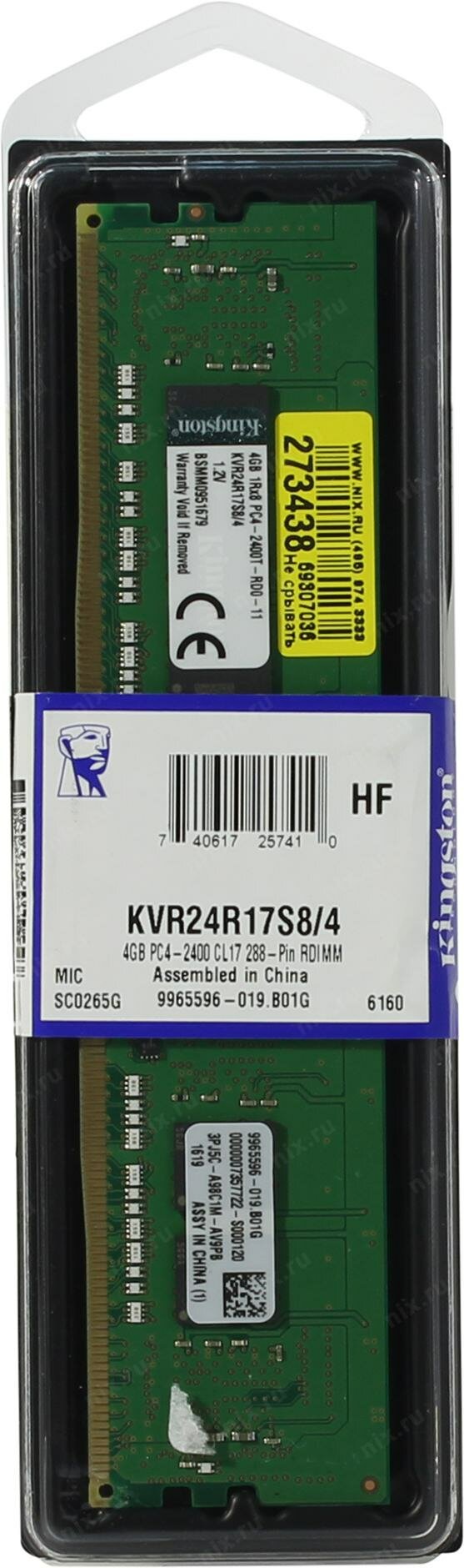 Память DDR4 Kingston KVR24R17S8/4 4Gb DIMM ECC Reg PC4-19200 CL17 2400MHz: сравнение цен, характеристики, фото, актуальное наличие и цены.