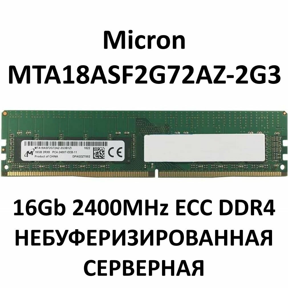 Память серверная DDR4 16GB 2400MHz PC4-19200 ECC non-REG UnBuffered 2RX8 UDIMM Micron MTA18ASF2G72AZ-2G3: сравнение цен, характеристики, фото, актуальное наличие и цены.