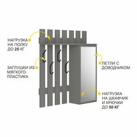 | Дополнительная информация | Крепление к стене - навес бытовой + дюбель распорный (дополнительно внизу), открывание дверки без ручки |