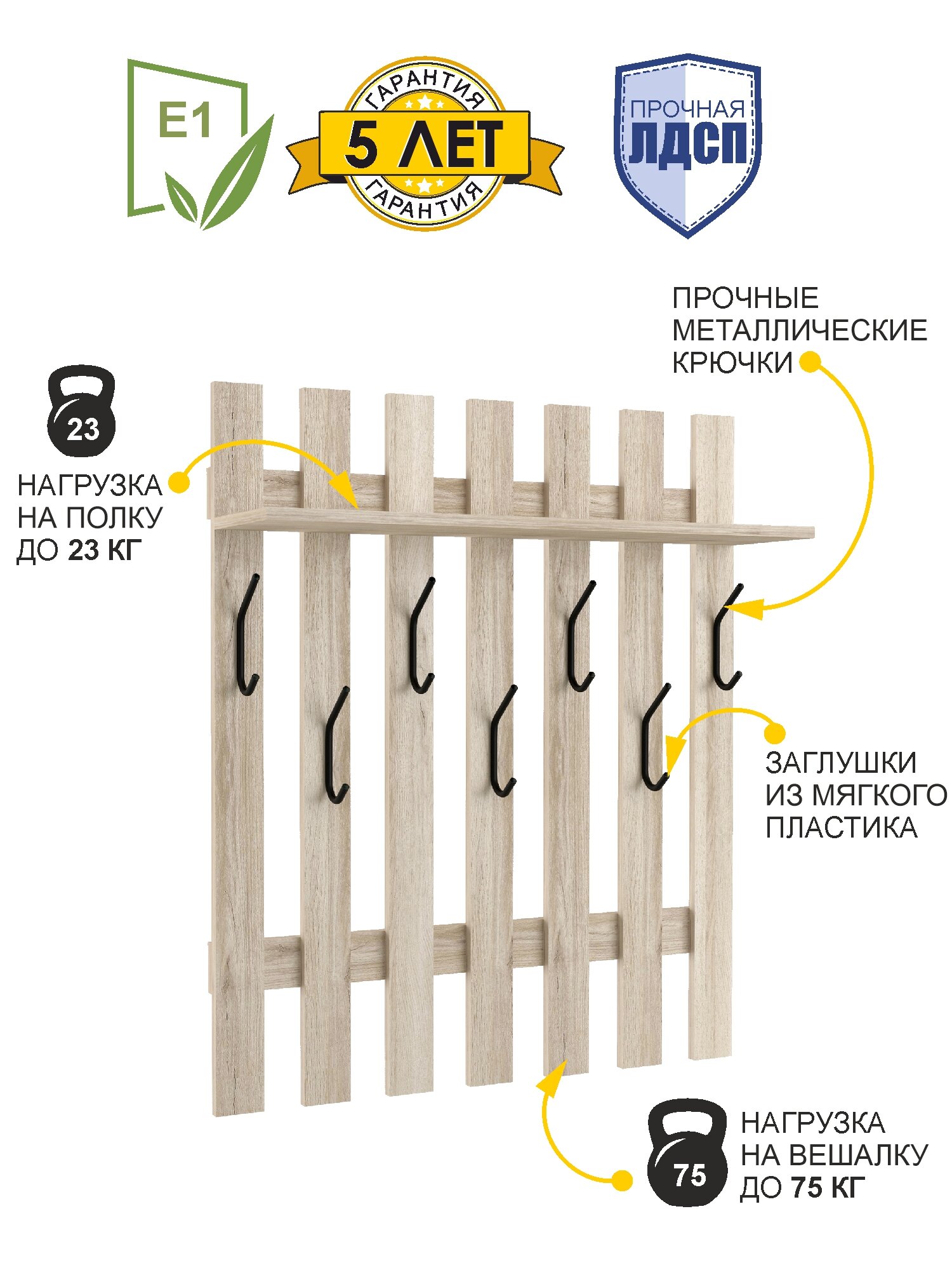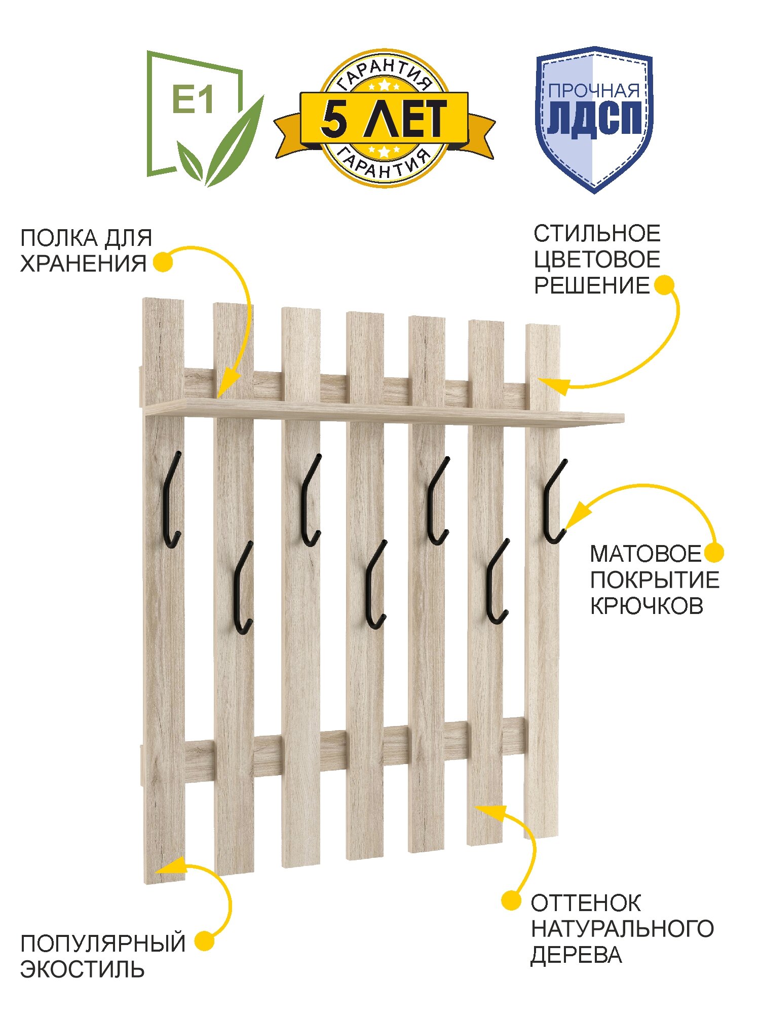 Вешалка настенная в прихожую 85 см с полкой 7 крючков Лана 12 (02) Дуб Кронберг: сравнение цен, характеристики, фото, актуальное наличие и цены.