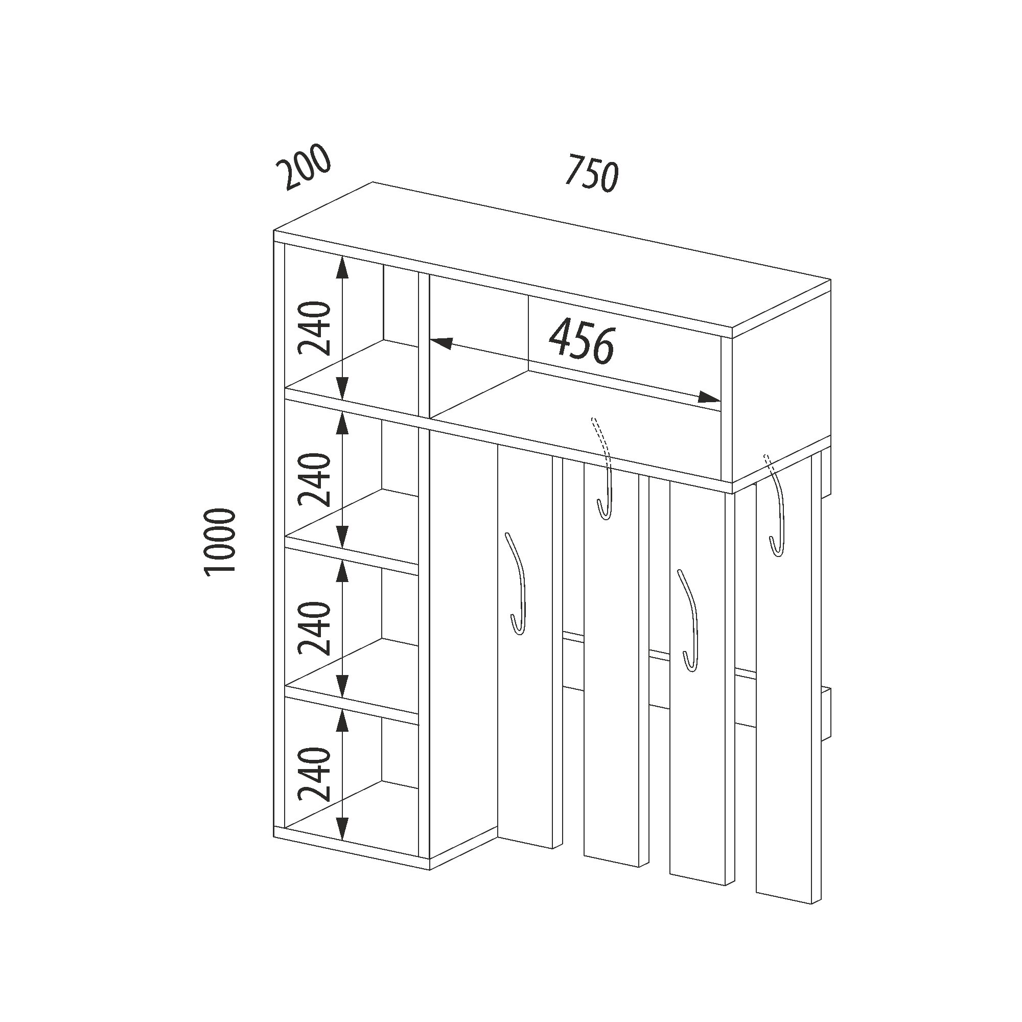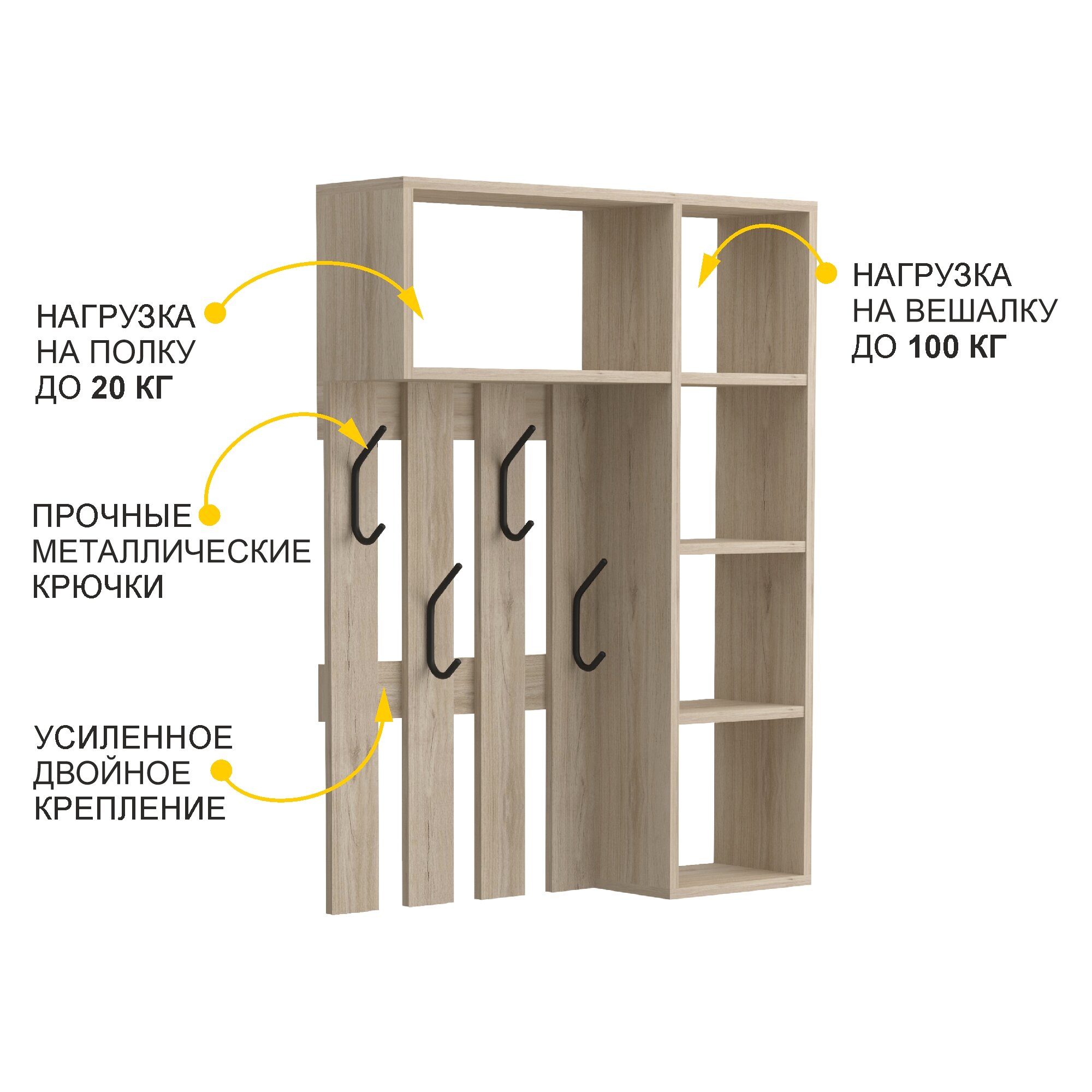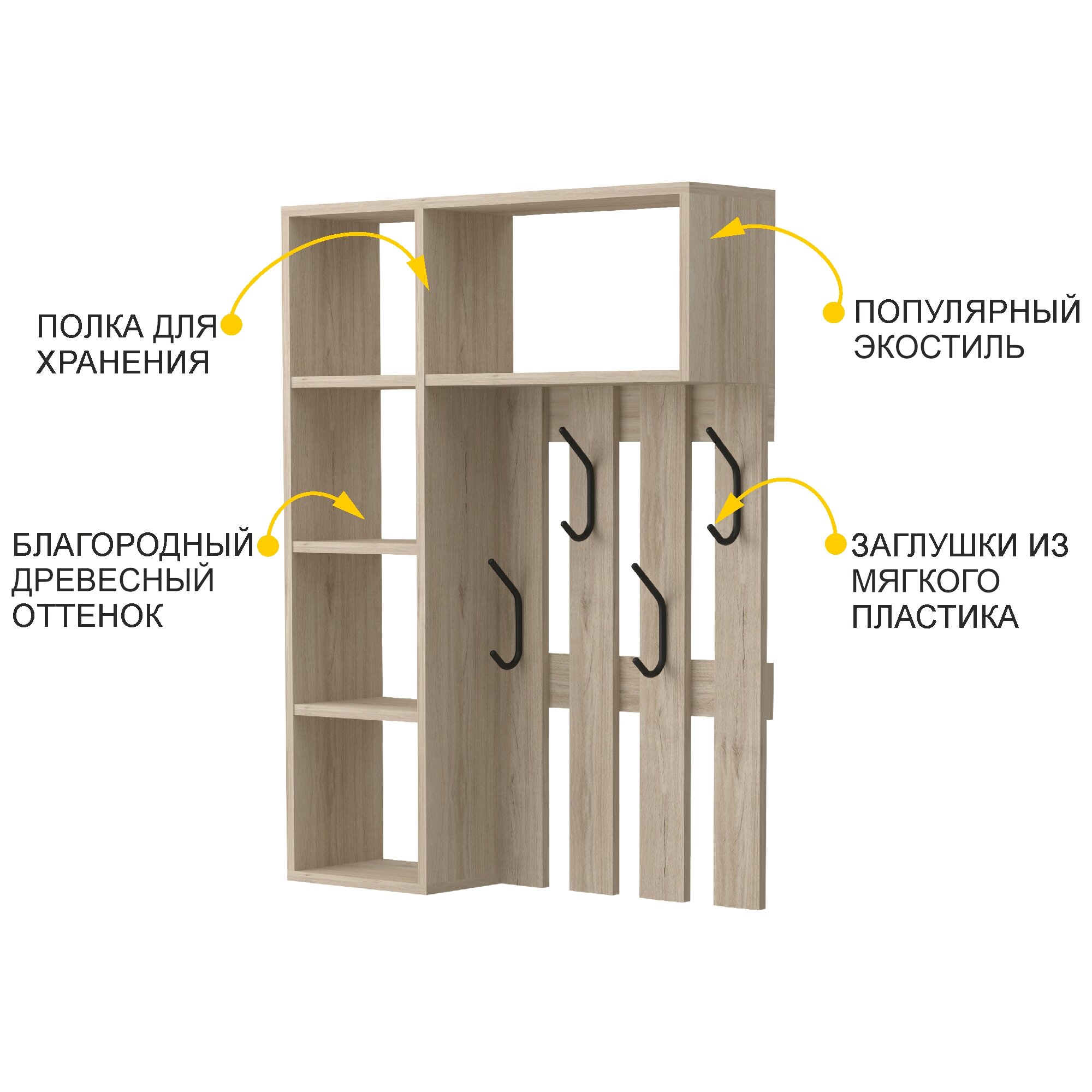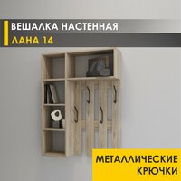 Купить Вешалка настенная в прихожую 75 см с полками 4 крючка Лана 14 (03) Дуб Кронберг с доставкой по всей России.