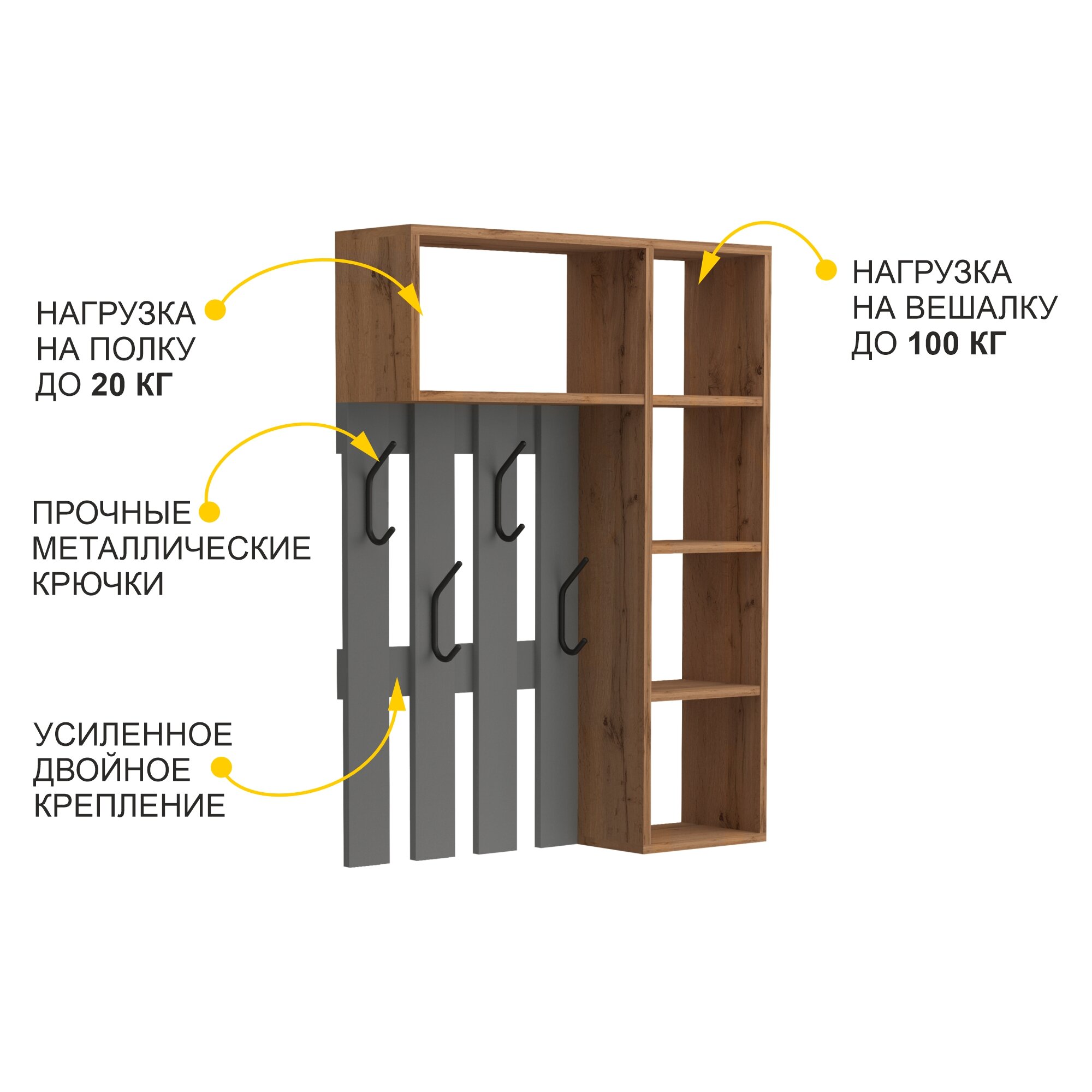 Вешалка настенная в прихожую 75 см с полками 4 крючка Лана 14 (04) Дуб Вотан/Оникс: сравнение цен, характеристики, фото, актуальное наличие и цены.
