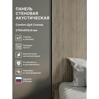 Панель стеновая 3д с рейками акустическая из коллекции Standart Comfort 9 в цвете Дуб Сонома 2780х600х9 мм – это идеальное решение для создания комфортной и стильной обстановки в гостиной, спальне, кухне, детской, прихожей (коридоре), зале и даже ванной комнате. Размеры: 27 мм - ширина рейки; шаг между рейками 13 мм; толщина панели 9 мм, где 3 мм слой войлока и 6 мм рейка; длина панели 2780 мм. Основное преимущество нашей стеновой панели, что панели могут повторять форму стенки, прямого угла и даже колонны, что позволит использовать их в более широком диапазоне применения. Также главным преимуществом является легкий монтаж на жидкие гвозди. Вы сможете провести монтаж самостоятельно без привлечения специалистов. К тому же наша панель скрывает неровности стен, что позволит создать ровную поверхность. Еще одно преимущество этой панели - ее можно подогнать под нужный размер, так как она легко режется. Это дает вам свободу выбора и удобство при монтаже в отличие от самоклеящейся пвх плитки, пластиковой плиты. Кроме того, акустические свойства панели позволяют снизить эхо и шум в помещении, создавая приятный декор и домашнюю атмосферу. Эта настенная декоративная панель также экологична, так как изготовлена из натуральных материалов из дерева. Она не содержит вредных веществ, не выделяет вредных паров или запахов. Деревянные панели на стену имеет сертификат качества, что гарантирует высокое качество, обеспечивающее долговечность и надежность панели. Еще одно преимущество этой панели - экономия на строительных работах. Цвет Дуб Сонома является классическим и универсальным, что позволяет легко вписать панель в любой стиль интерьера. Выводя все вышеперечисленные преимущества, стеновые не самоклеящиеся панели является отличным выбором для обновления интерьера вашего дома. Она объединяет в себе стильный дизайн, удобство монтажа, шумоизоляционные свойства, экологичность и сертифицированное качество. В упаковке - 1 шт.