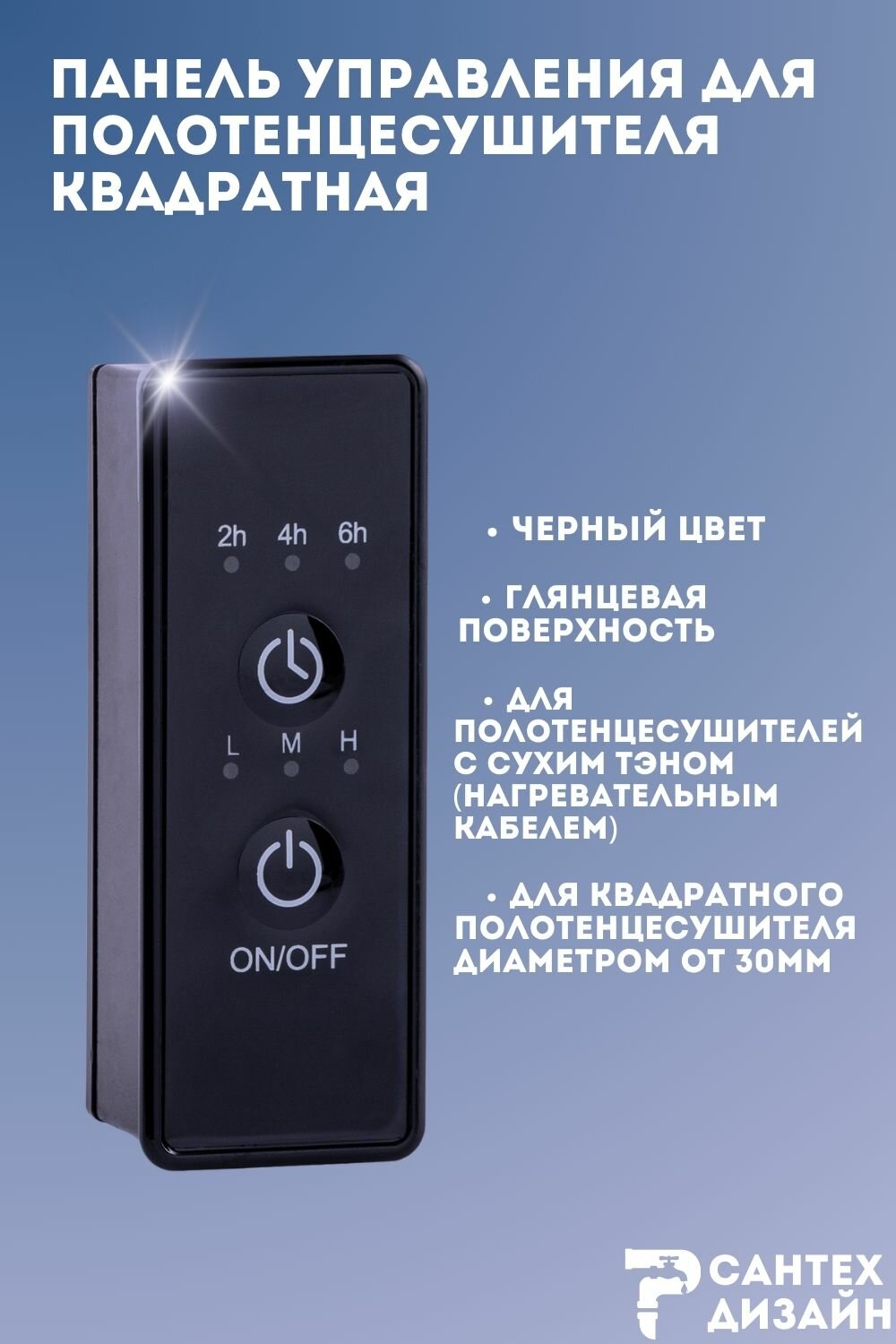 Панель управления для полотенцесушителя предназначена для управления вашим электрическим полотенцесушителем. Она подходит для установки на полотенцесушители квадратного или прямоугольного профиля с диаметром трубы 30 мм и больше.