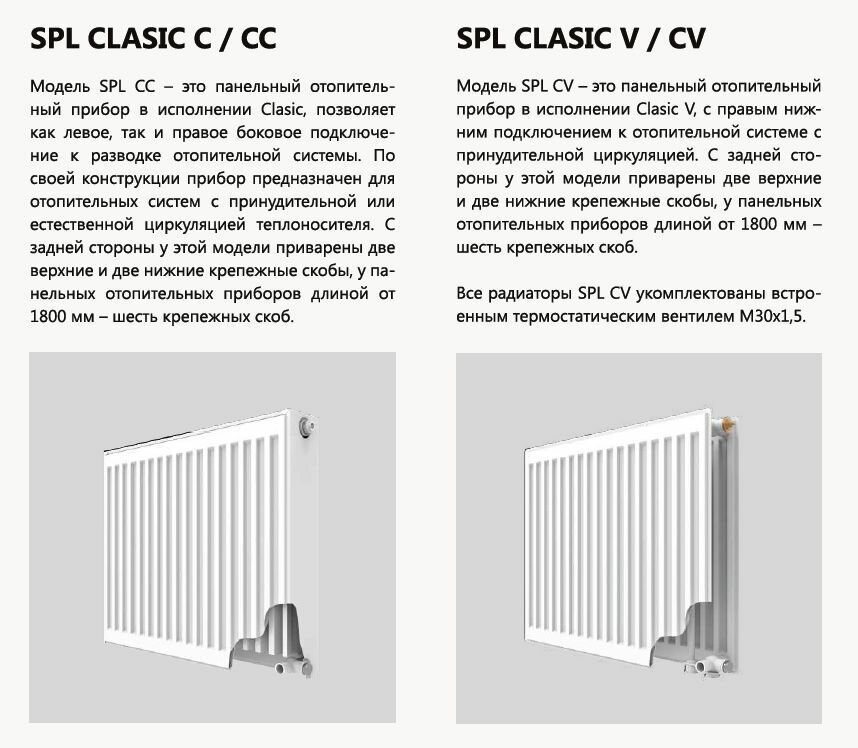 Купить Панельный радиатор отопления SPL Clasic C 22-300-1000 с боковым подключением с доставкой по всей России.