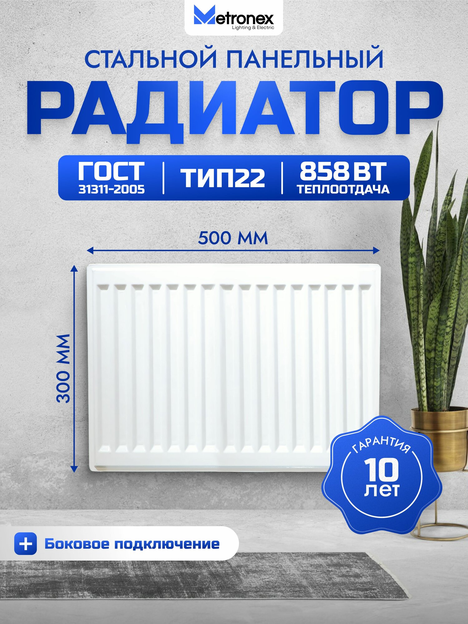 Панельный стальной радиатор Metronex, тип 22 — 300х500 мм с боковым подключением: сравнение цен, характеристики, фото, актуальное наличие и цены.