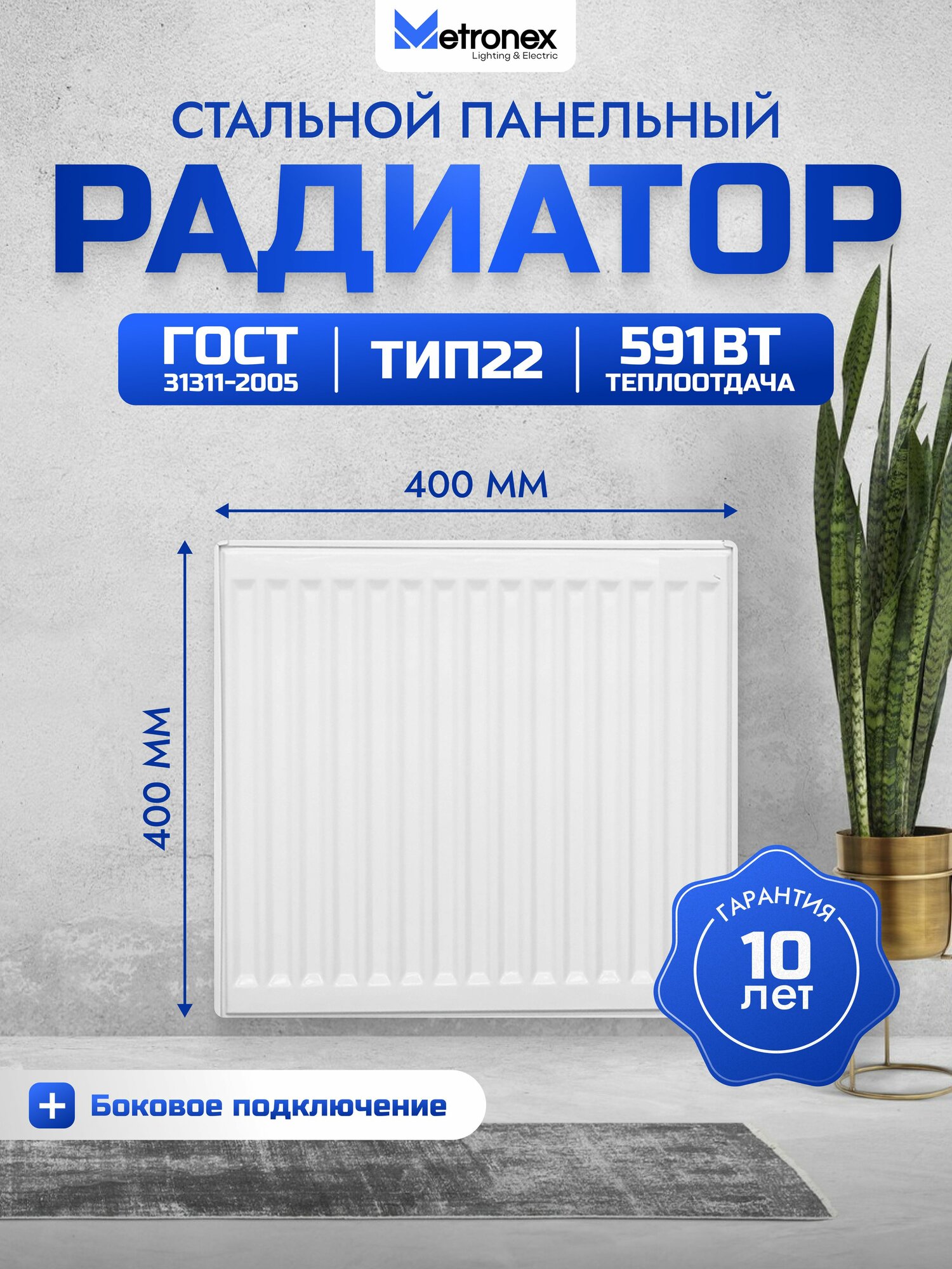Панельный стальной радиатор Metronex, тип 22 — 400х400 мм с боковым подключением: сравнение цен, характеристики, фото, актуальное наличие и цены.