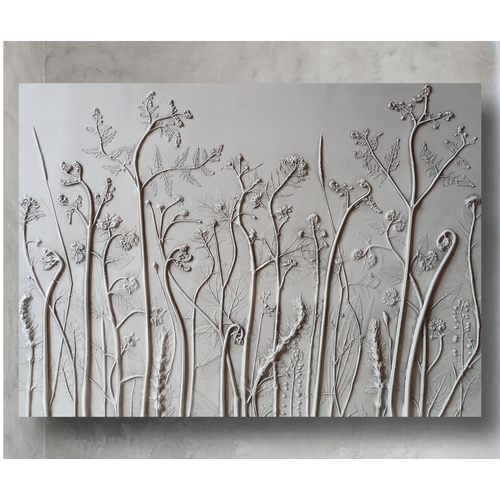 Ботанический барельеф - это изысканное решение для декора Вашего интерьера. Изготовленное вручную, панно представляет собой оттиск живых растений, который повторяет все тонкости их рельефа. Панно выполнено из высокопрочного гипса. Использованы лесные растения. Размер 50*70*2 см, цвет светло-серый, есть крепления для размещения на стене. Мягкие оттенки и изящные линии барельефа дарят эстетическое удовольствие своему обладателю. Ботанический барельеф - это не просто украшение, но и способ выразить свою любовь к природе.