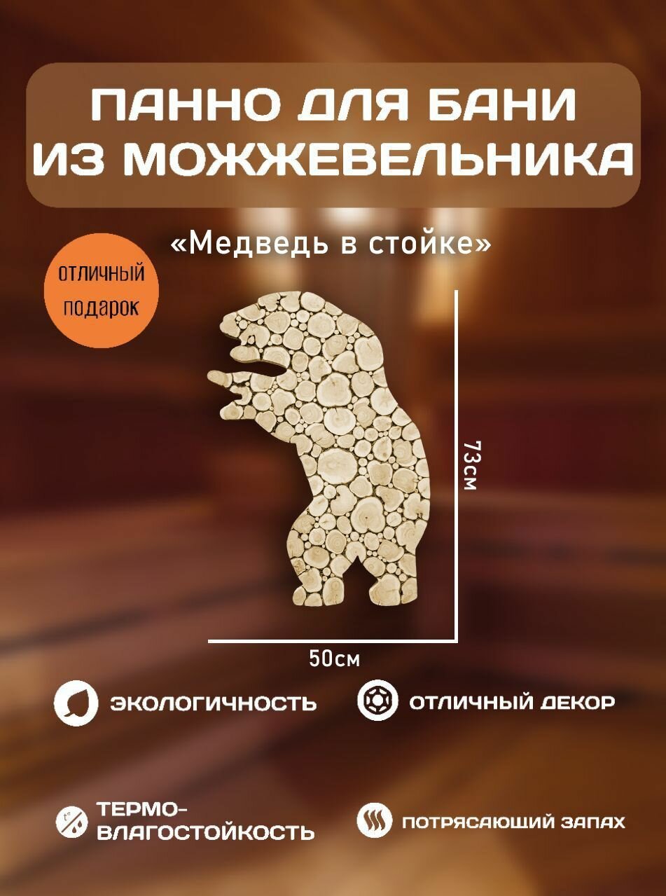 Панно из можжевельника для бани «Медведь в стойке»: сравнение цен, характеристики, фото, актуальное наличие и цены.
