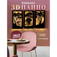 Наши интерьерные декорации из дерева состоят из трёх модулей одинакового размера (37*18 см), позволяя вам самостоятельно создать уникальную композицию. Внутри каждого модуля разместились светодиодные гирлянды, которые придадут вашему интерьеру дополнительный уют и атмосферу. Питание от батареек делает их использование простым и комфортным, а в комплект уже входят все необходимые элементы: батарейки и крепления для установки.