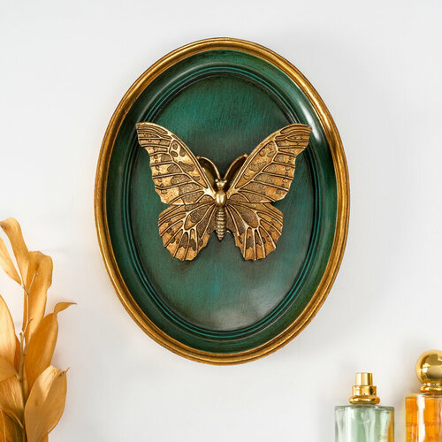 Купить Панно настенное «Бабочка», полистоун, декор, тёмно-зелёный, 20×4×26 см с доставкой по всей России.