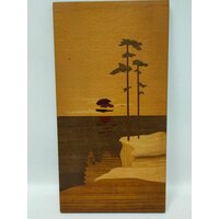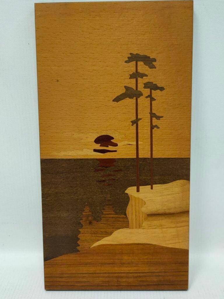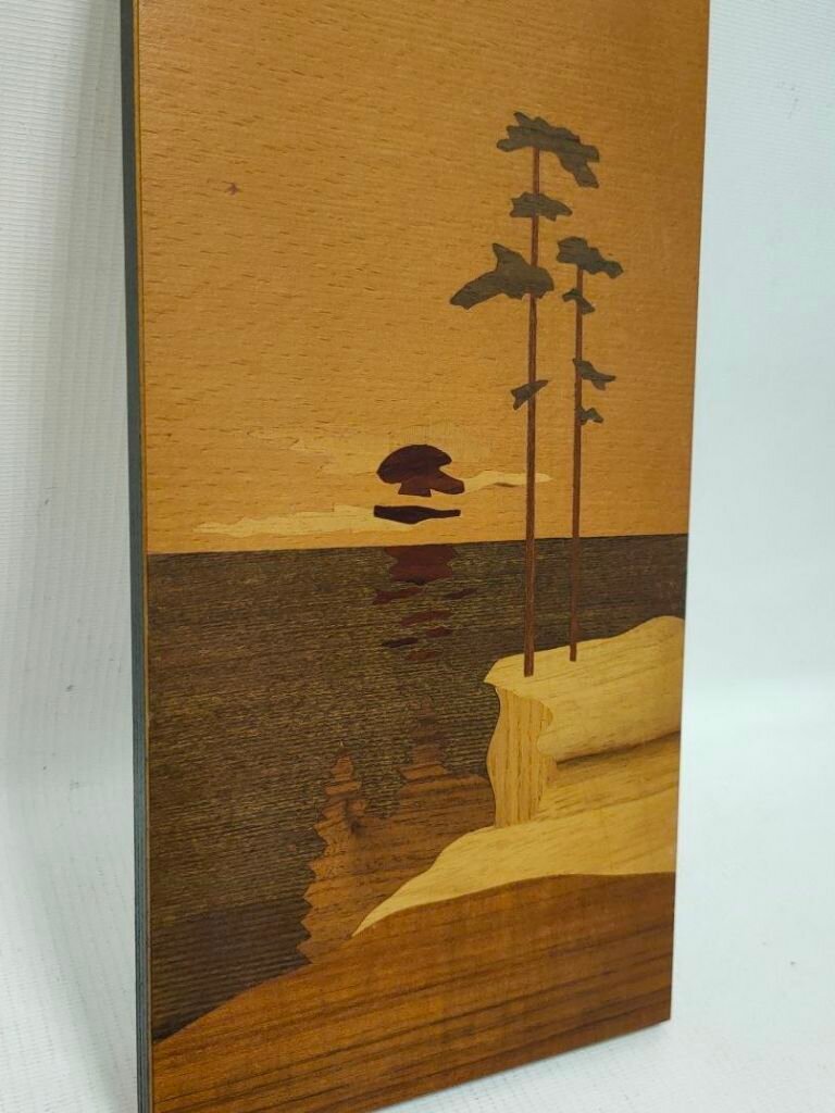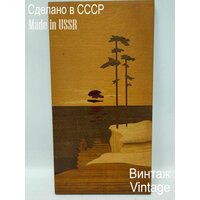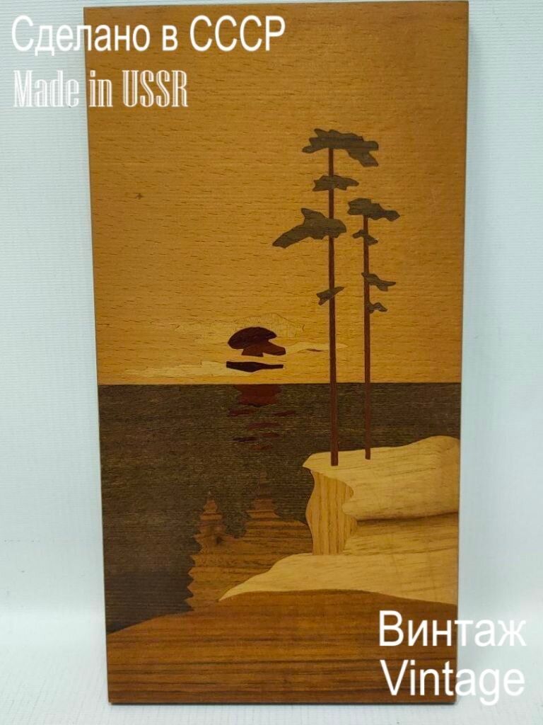 Панно настенное советских времен из шпона в технике маркетри «Северный пейзаж с соснами», ручная работа по дереву, винтаж СССР: сравнение цен, характеристики, фото, актуальное наличие и цены.