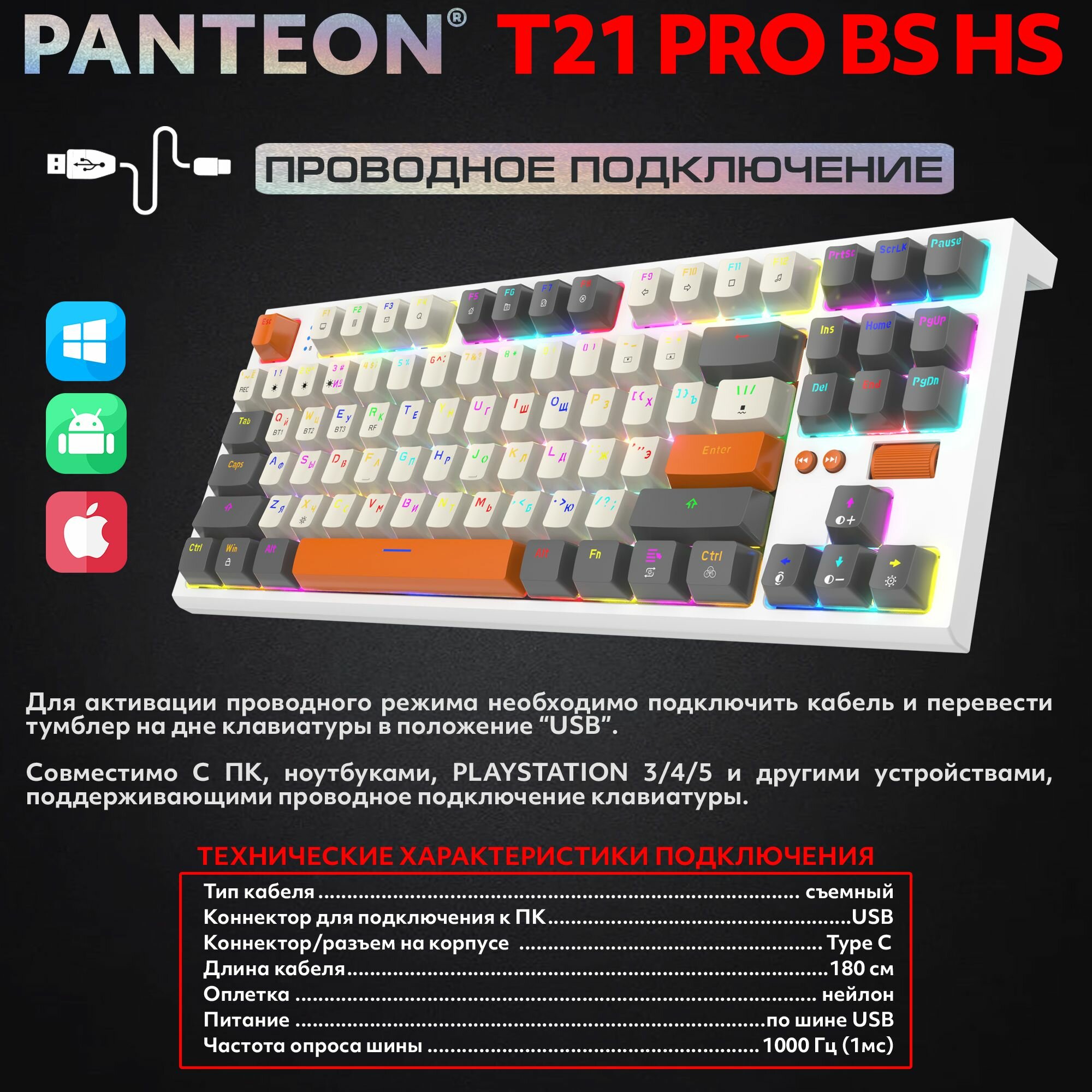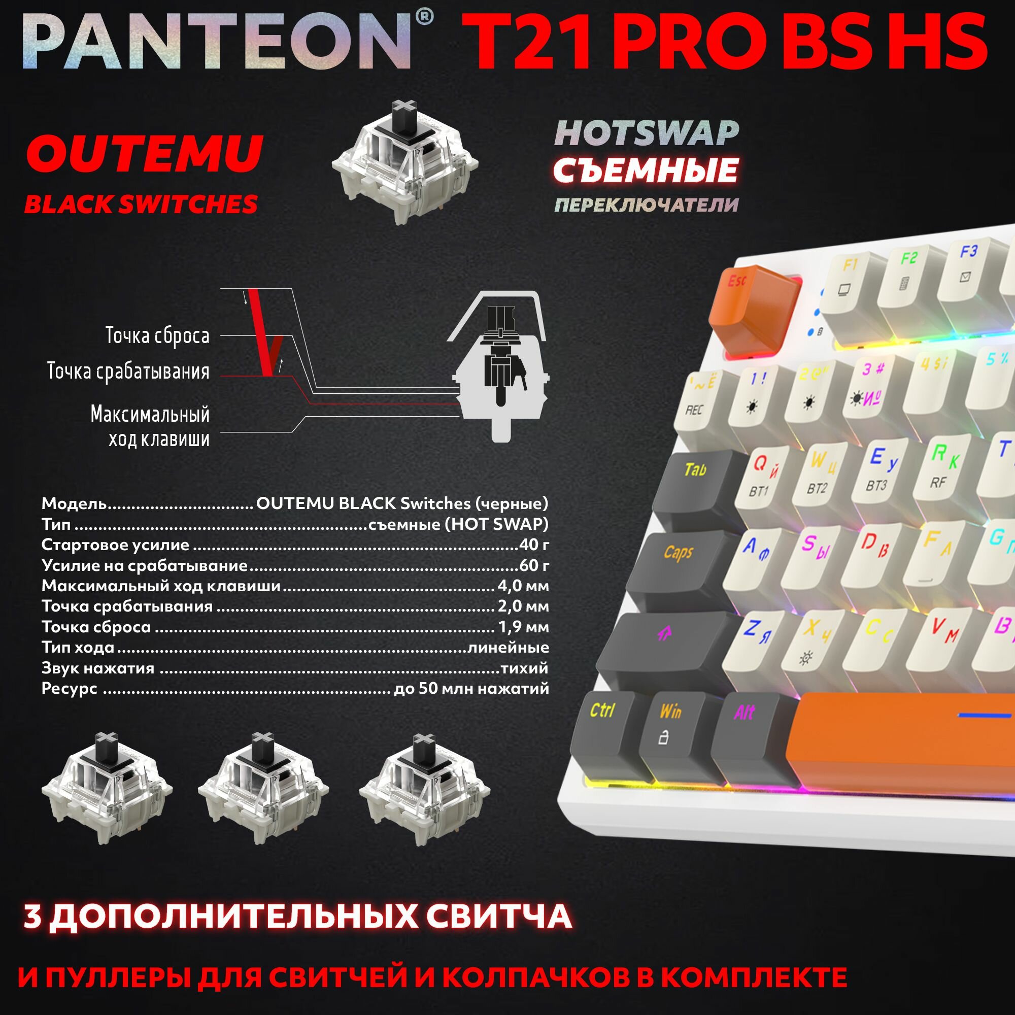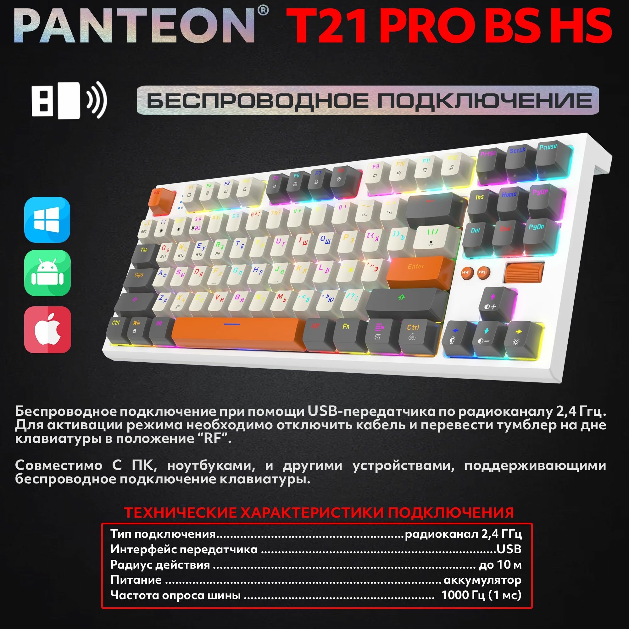 Механическая игровая клавиатура PANTEON «T21 PRO», Outemu Black, RGB подсветка, TKL, беспроводная: сравнение цен, характеристики, фото, актуальное наличие и цены.