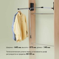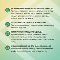 Данный аксессуар выполнен в черном цвете, что делает его универсальным решением для любого интерьера. Он гармонично впишется в дизайн вашего шкафа и добавит ему современный вид. Используя пантограф, вы сможете не только организовать пространство, но и продлить срок службы вашей одежды, избегая ее повреждений.