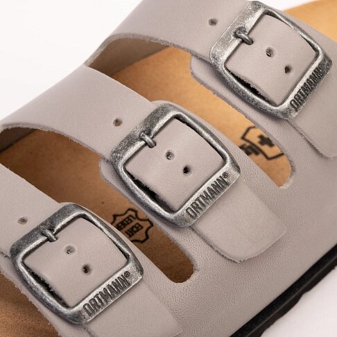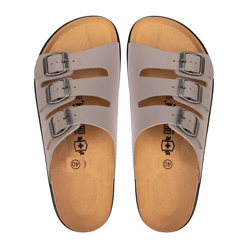 Мужские ортопедические пантолеты Ortmann Marcelo из мягкой натуральной кожи созданы специально для истинных ценителей 100% комфорта. Анатомическая стелька из натуральной пробки и латекса поддерживает своды стоп в физиологически правильном положении и защищает опорно-двигательный аппарат от ударной нагрузки при ходьбе, обеспечивая хорошую амортизацию и комфорт. Верх стельки из натуральной замши отлично впитывает влагу, а также не позволяет ноге скользить внутри обуви. Три широких ремешка с металлическими пряжками позволят оптимально отрегулировать обувь по полноте и хорошо зафиксировать на ногах. Легкая и гибкая рифленая подошва из ЭВА практически не ощущается на ногах, позволяя активно двигаться в течение дня, не ощущая усталости.
